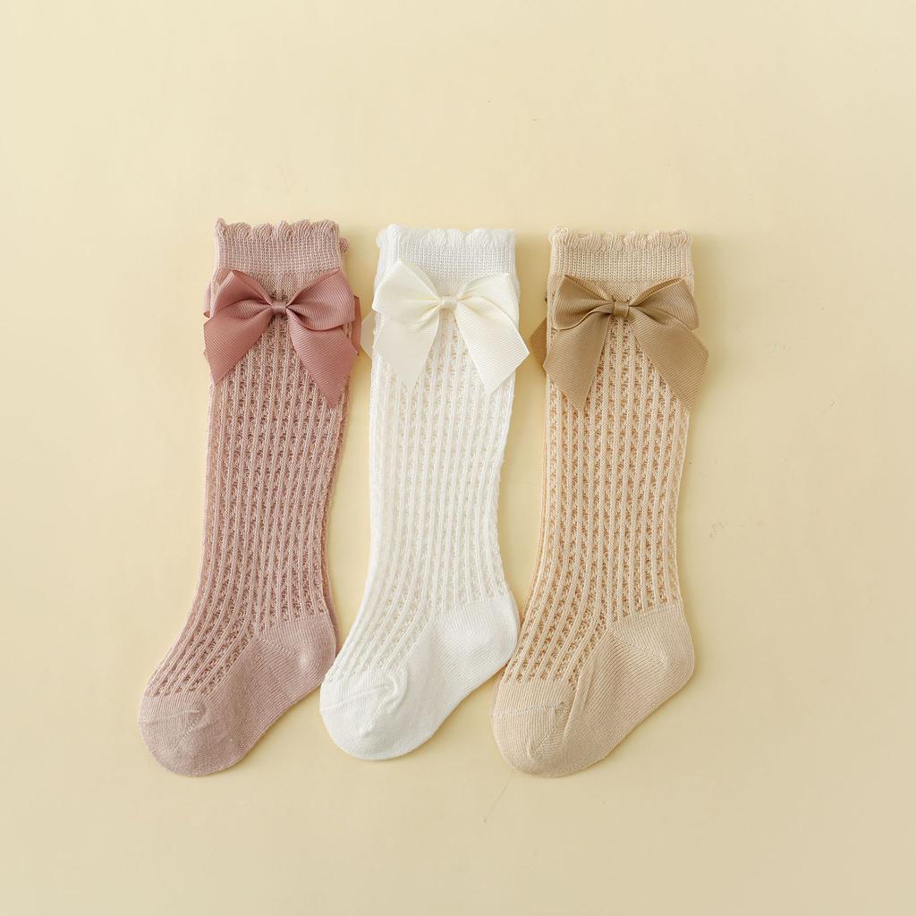 Новые летние детские носки для младенцев для девочек для новорожденных Mather Kids милые детские носки до колена с бантом для малышей нескользящие длинные носки хлопок