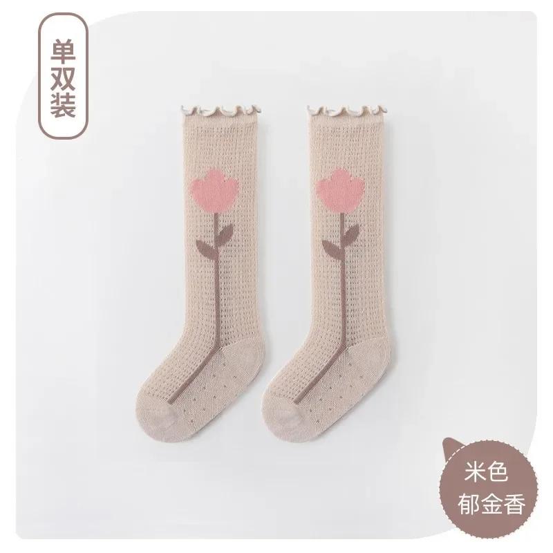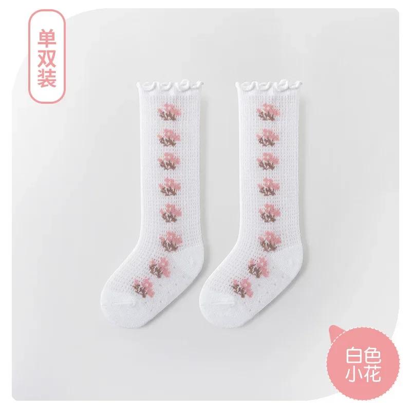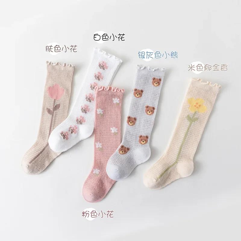 1 пара летних носков для маленьких девочек с рисунком медведя, эстетические гольфы с цветочным принтом для маленьких девочек, мягкие хлопковые сетчатые дышащие носки