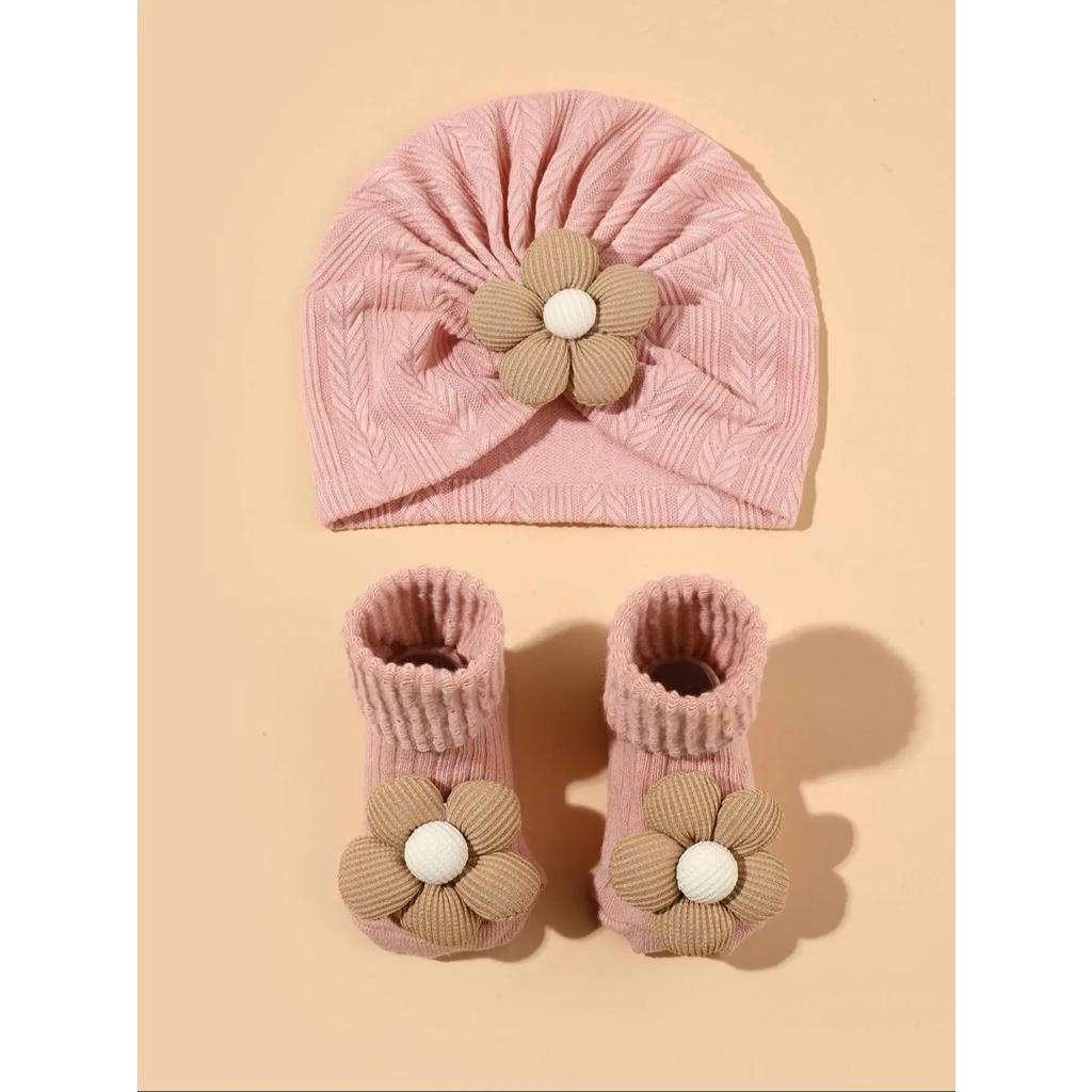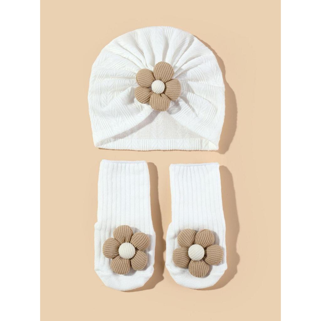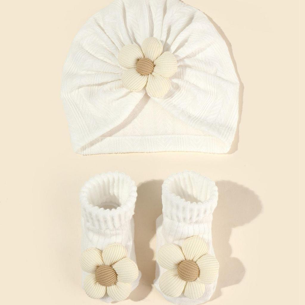 Комплект Шапочка с цветком и носки для новорожденных девочек, короткие носки-гольфы + шапка-тюрбан, эластичные мягкие детские индийские шапочки 0-12 месяцев, подарок для малыша Cuterus