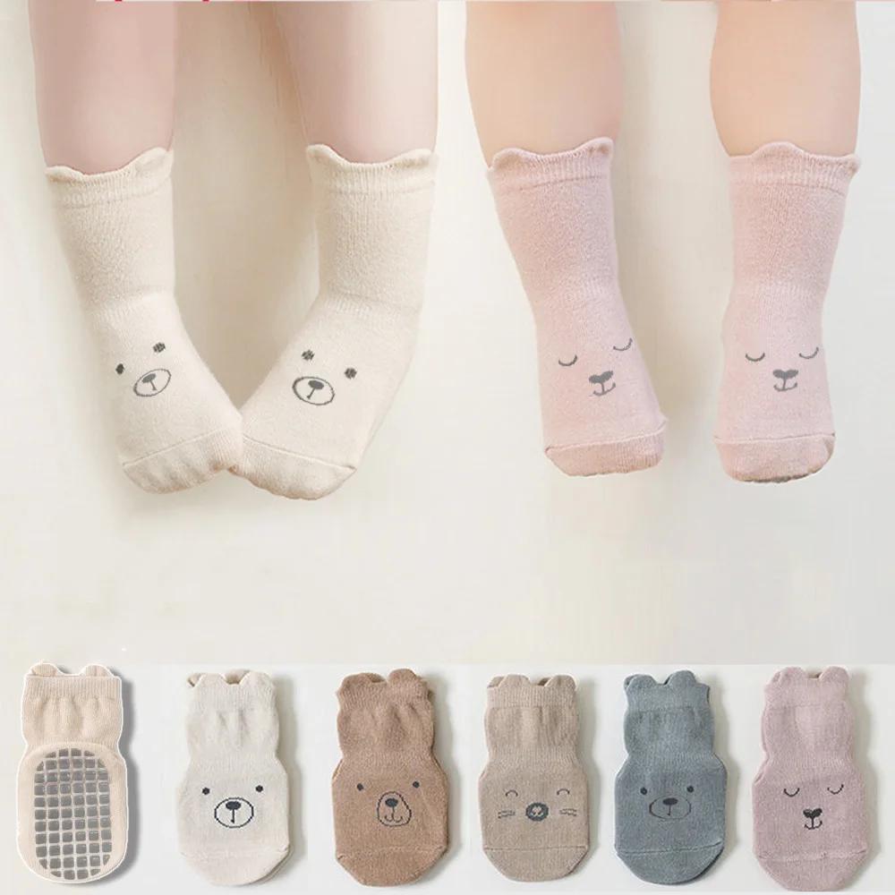 3 Pairs/Set Infant Baby Girls Anti-slip Socks Cotton Cartoon Toddler Girl Mid Tube Sock Children Kid Girl Indoor Rubber Sock Kit