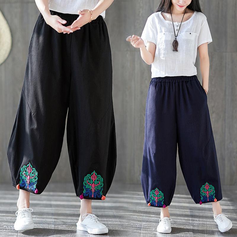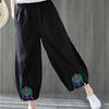 Брюки длиной девять точек Женские Летний Новый Стиль Художественный Ретро Стиль Свободные Повседневные Вышитые Брюки-фонарики Женские