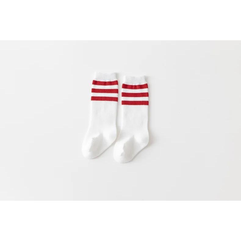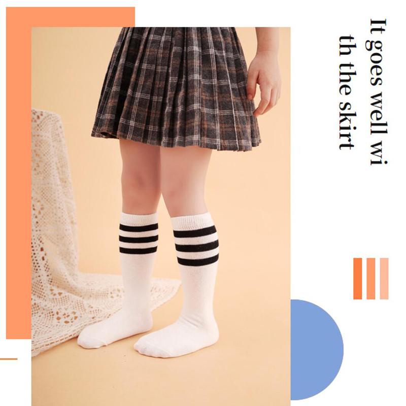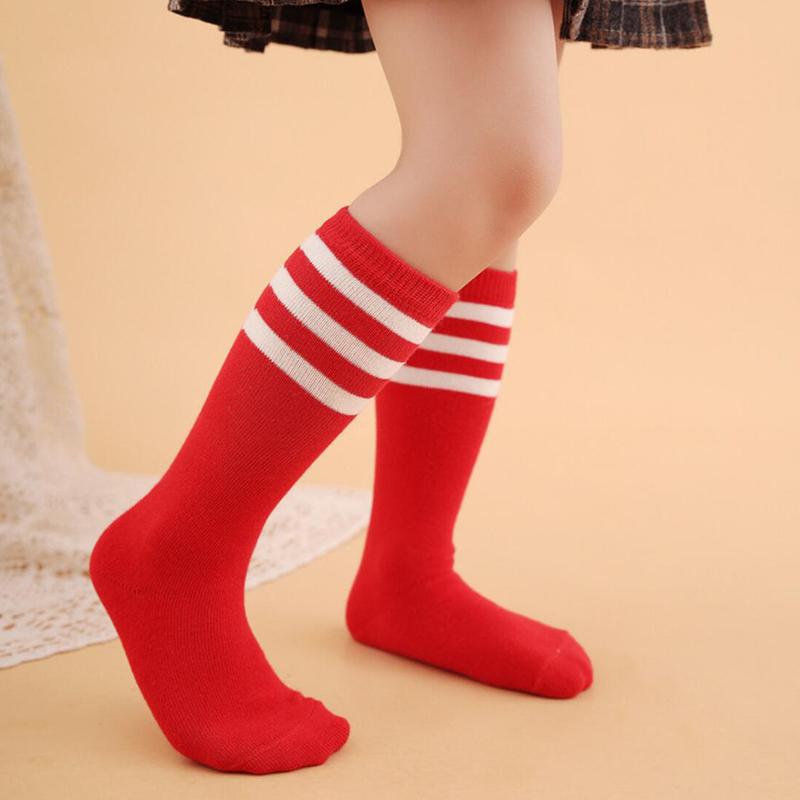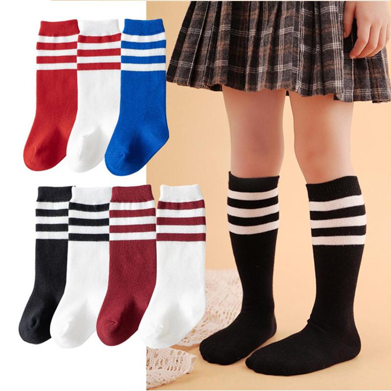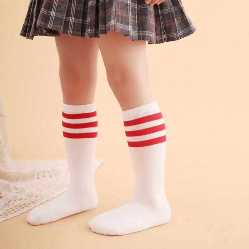 Синий/красный/белый/черный Полосатый стиль Школьные гольфы до колена для девочек Весна Осень Хлопковые Дышащие Гольфы для девочек-малышей Рождественский подарок