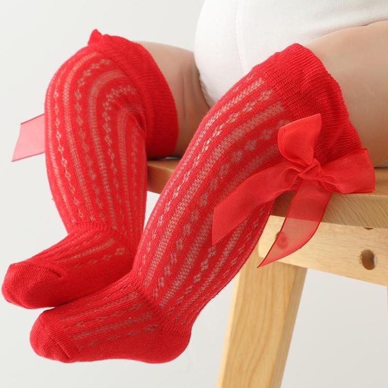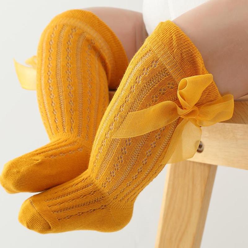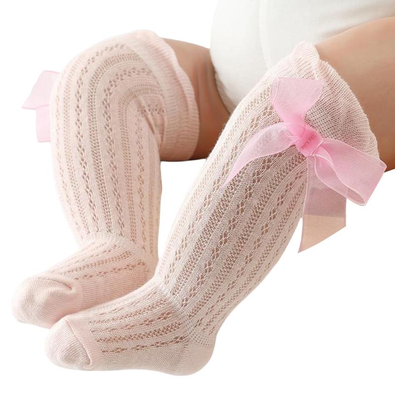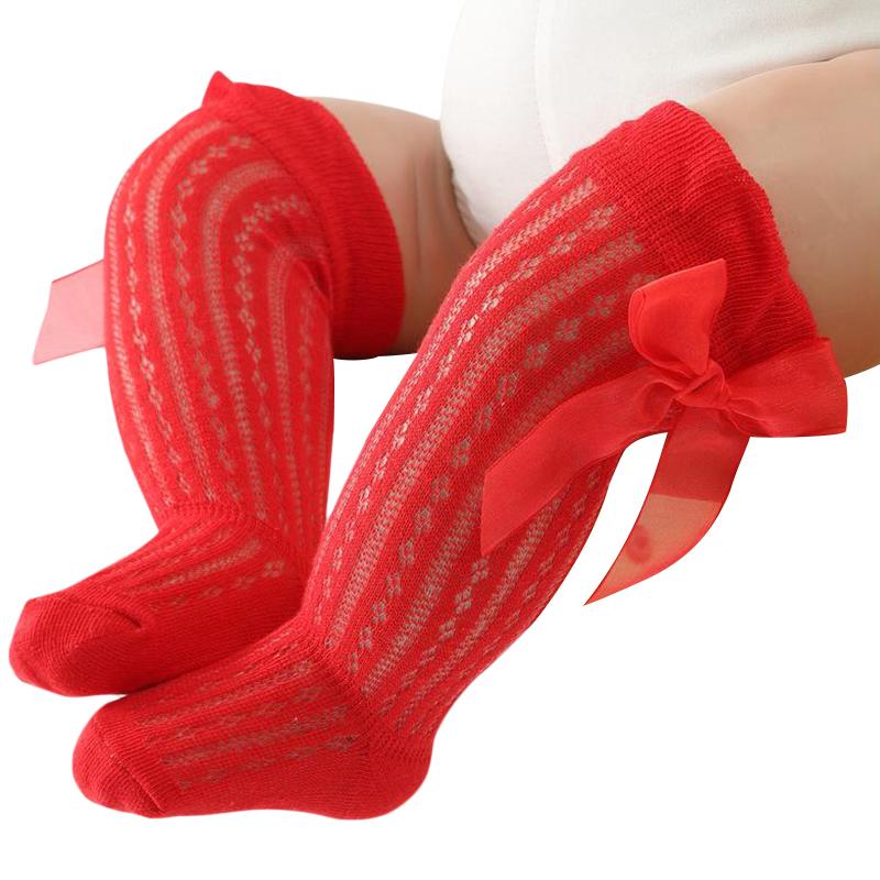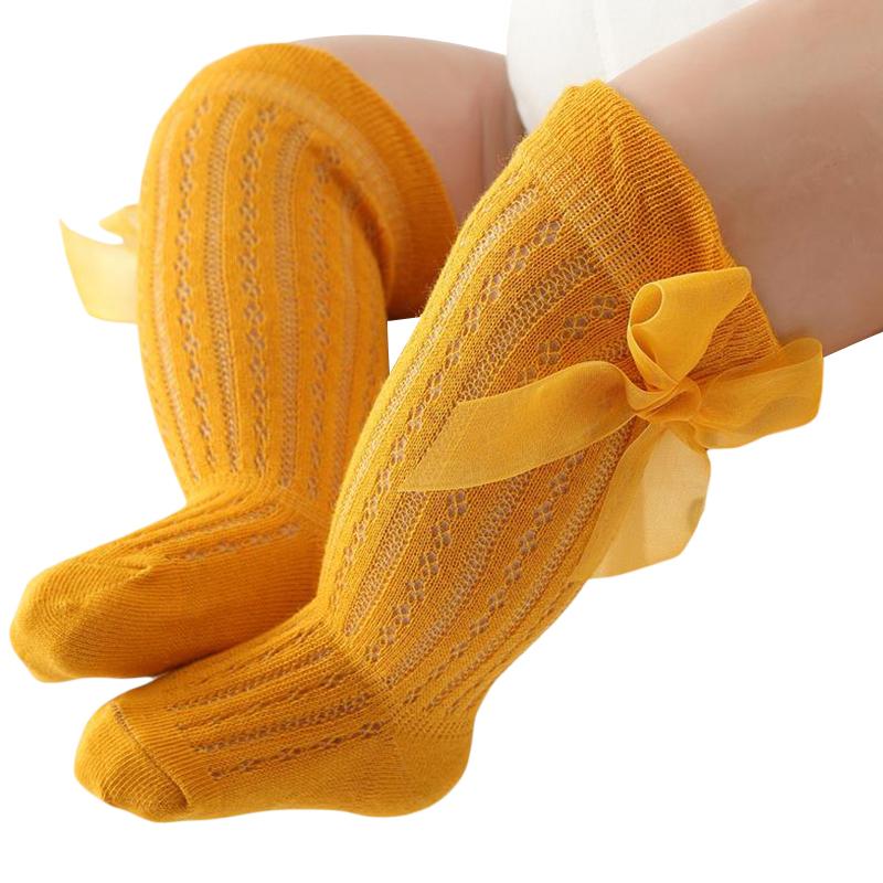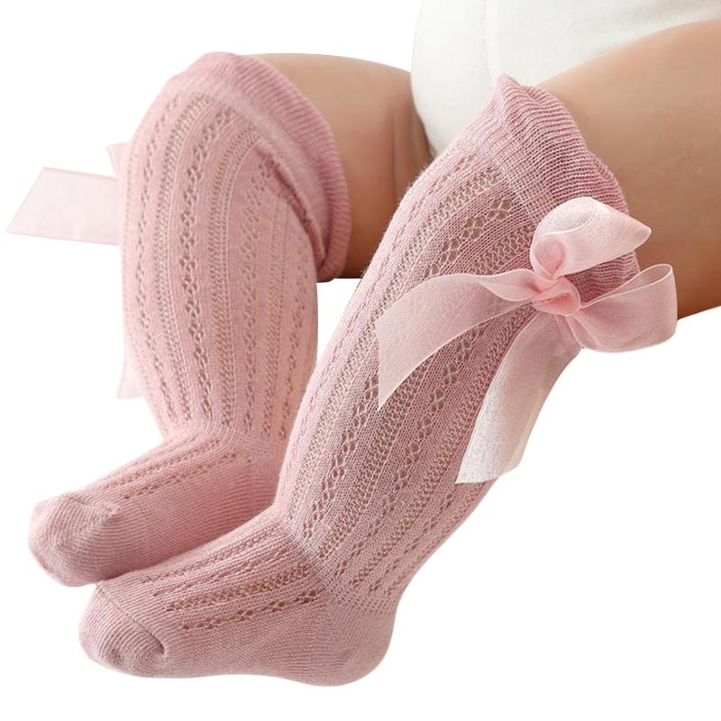 Детские носки гольфы для девочек, длинные, принцесса, однотонные, милые с бантиком, дышащие, с широким верхом, носки выше колена