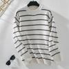 Винтажный полосатый кардиган трикотаж длинный рукав свободный свитер круглый вырез осенне-зимний топ — купить товар онлайн с бесплатной доставкой до всему миру!