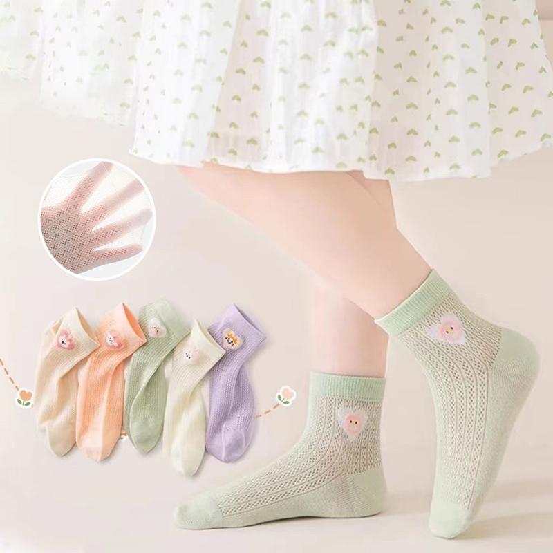 5Pairs Girls Summer Mesh Socks Heart Love Candy Color Mid Tube Sock 1-14year Children Stcokings Cotton Breathable Baby Footwear