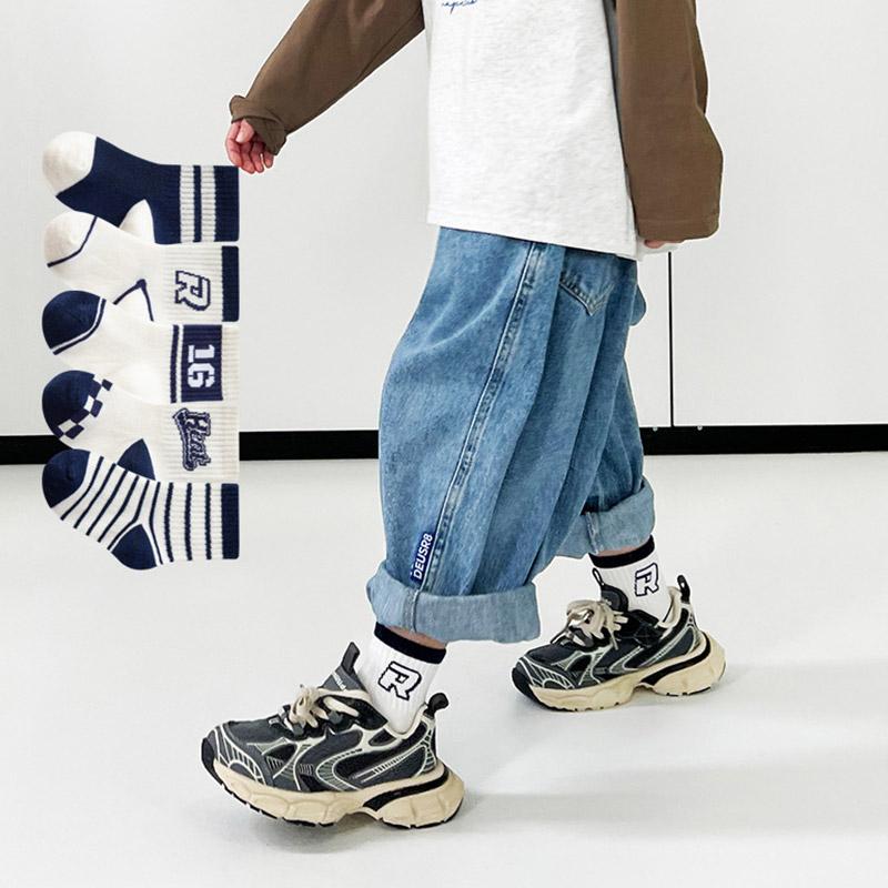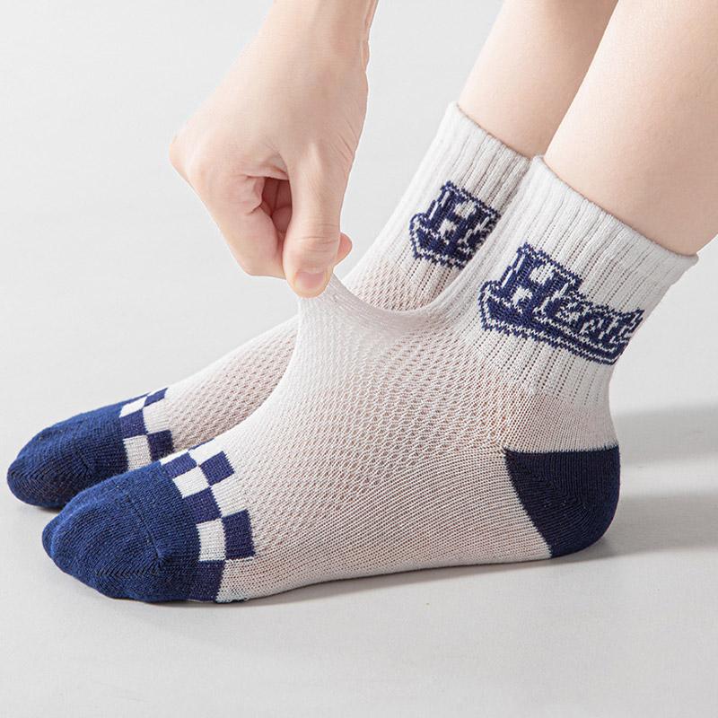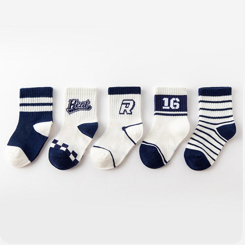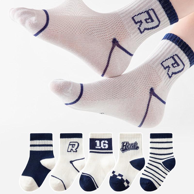 Модные детские носки с буквой R, 5 пар, летние сетчатые дышащие полосатые носки средней длины для мальчиков и девочек, 0-12 лет, детские повседневные спортивные носки