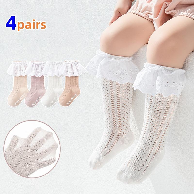 4 пары/комплект Детские носки для девочек Летние Младенческие Девочковые Носки Нескользящие Новорожденные Хлопковые Кружевные Детские Носки Принцессы 0-5 лет