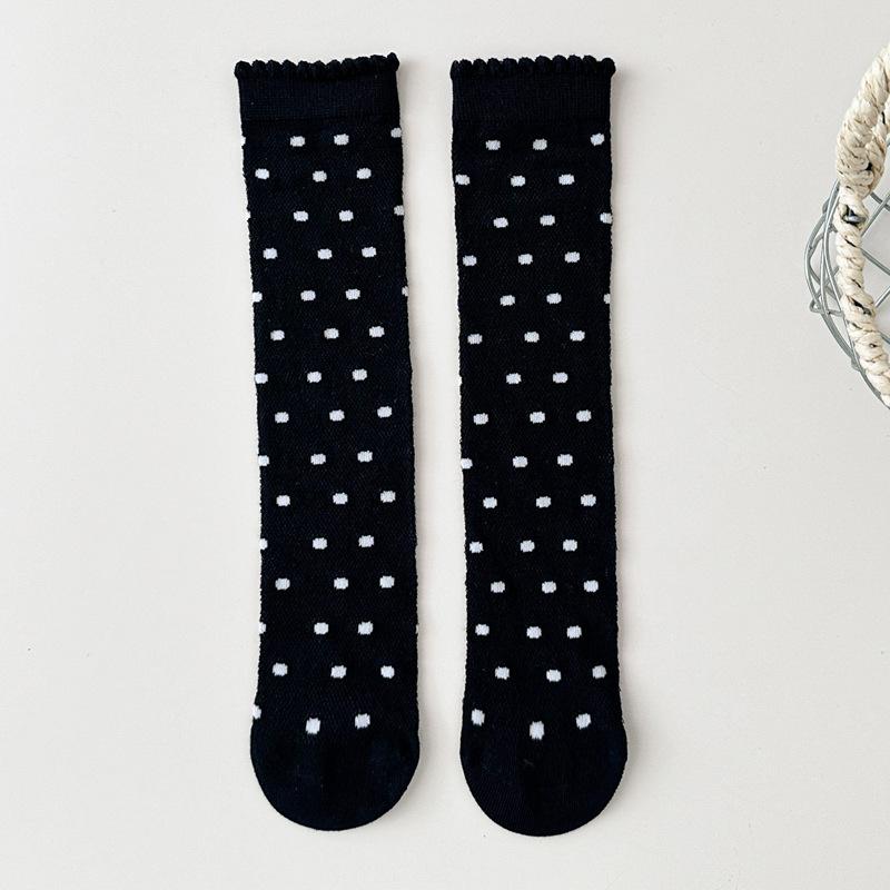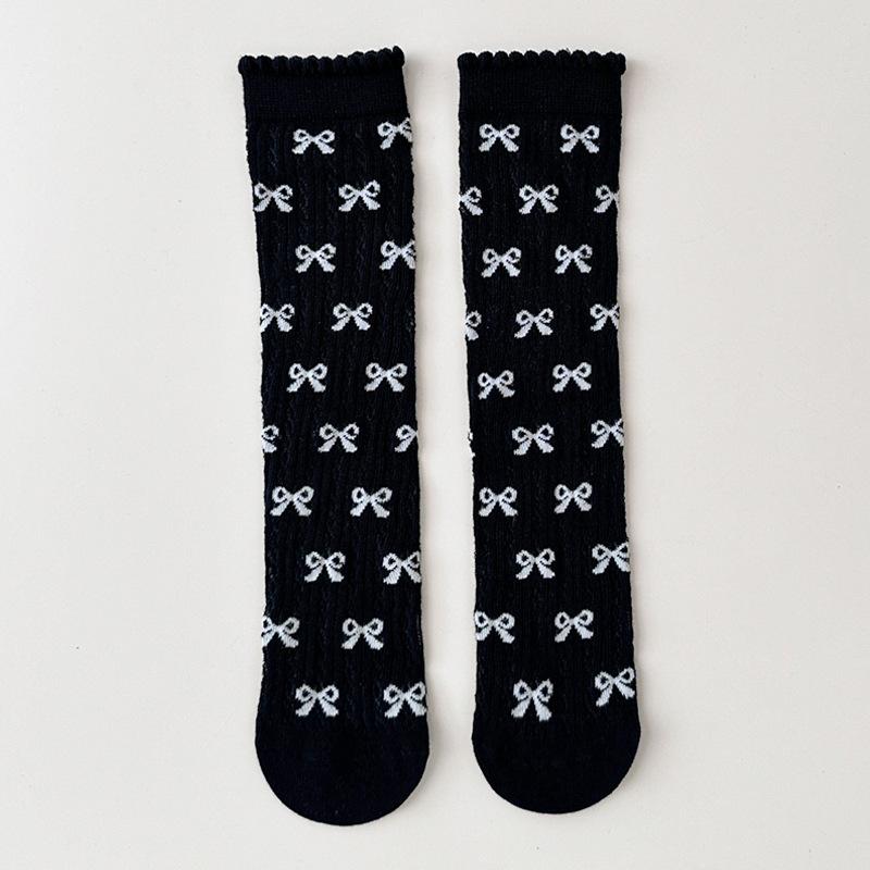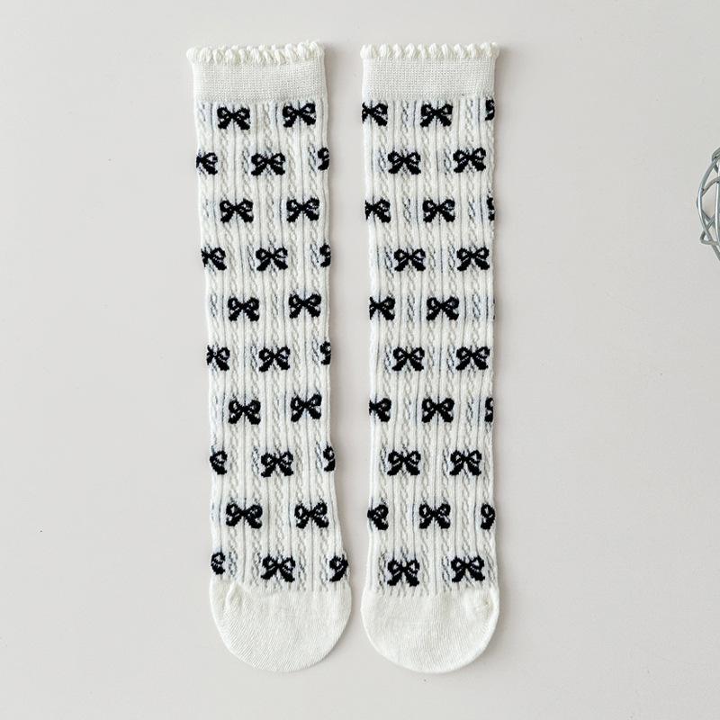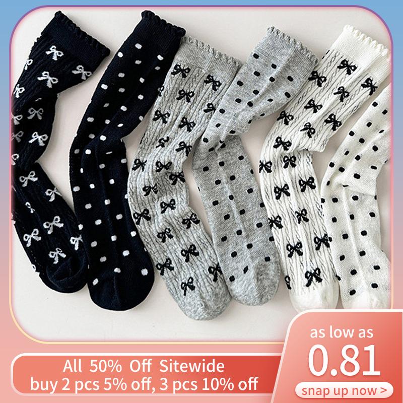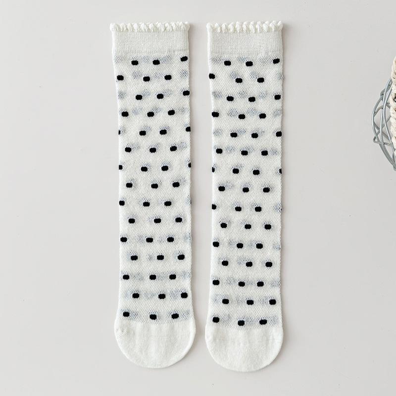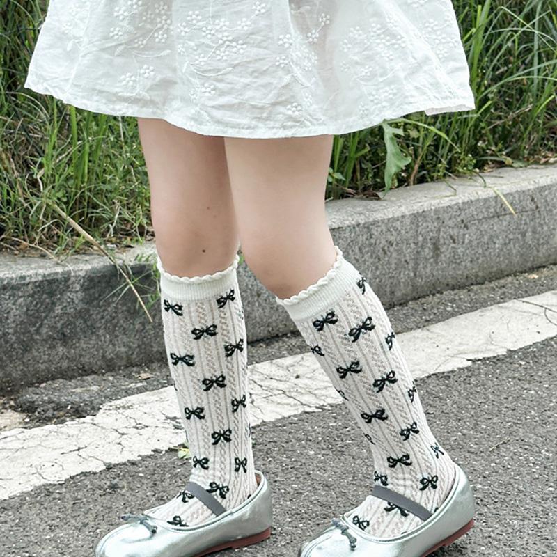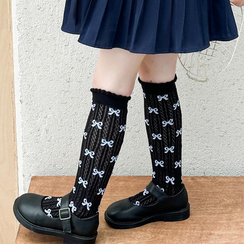 Принцесса Девочка Колготки в Горошек Летние Тонкие Сетчатые Гольфы до Икры Детские Бесшовные Кружевные Длинные Носки Бант Детские Колготки с Отворотом Обувь