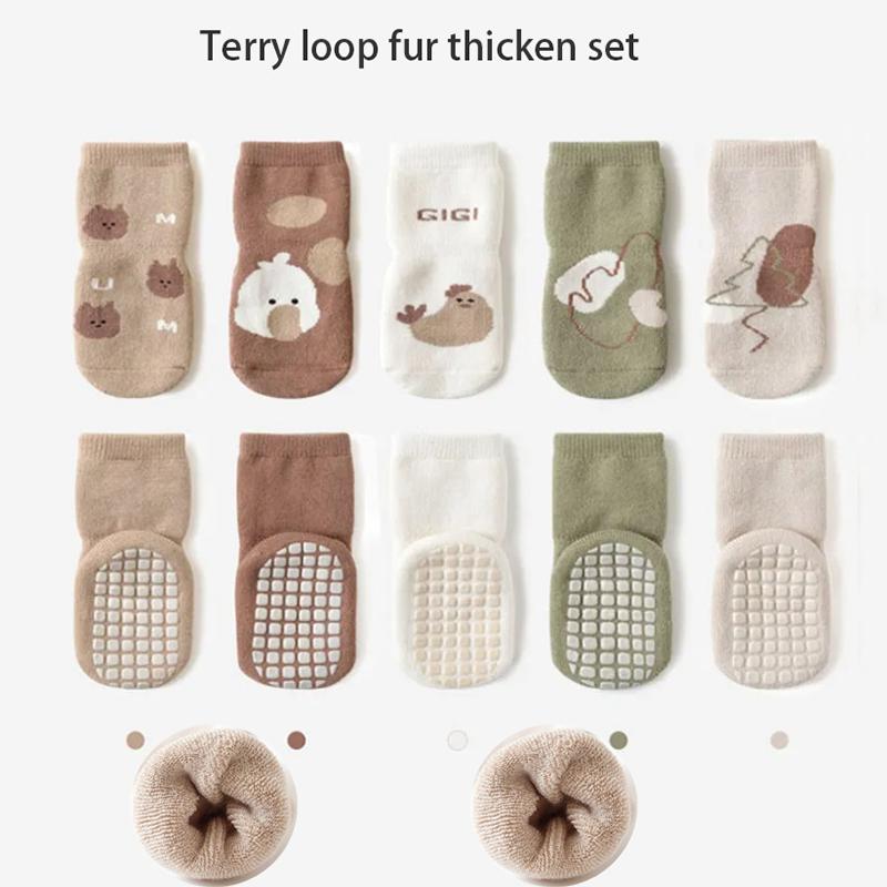 5 пар зимних детских носков для малышей, нескользящие, детские мультяшные напольные носки, теплые носочки для дома, аксессуары 0-5 лет