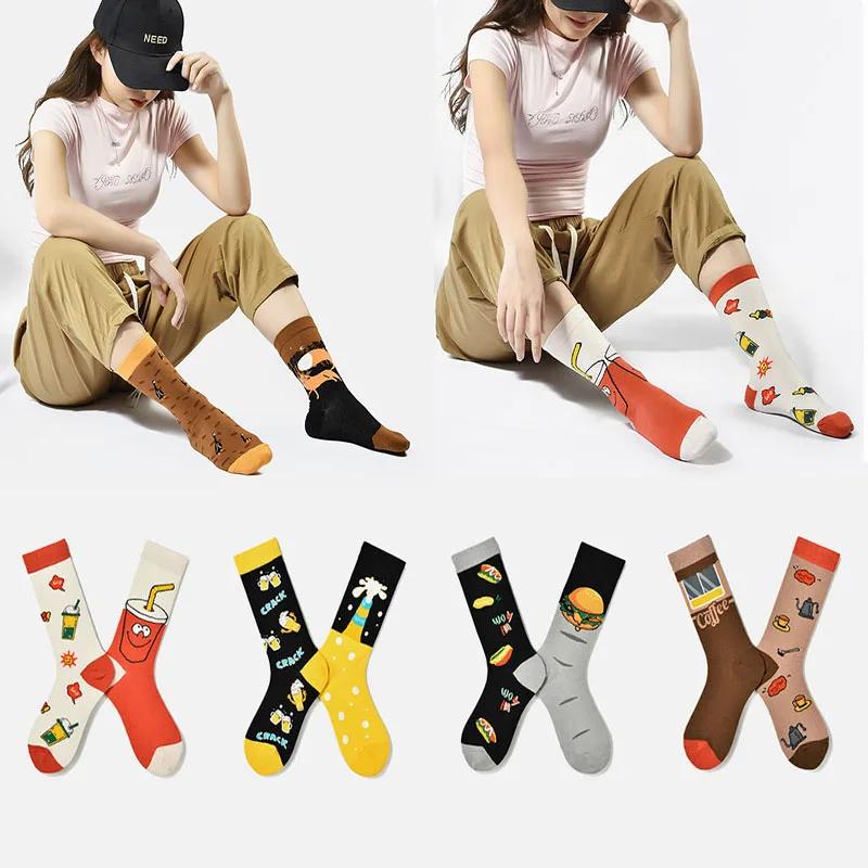 AB Мультяшный Гамбург Животное Мода Веселые Носки Асимметричный Узор Уличный Универсальный Средний Индивидуальность Граффити Хлопковые Носки