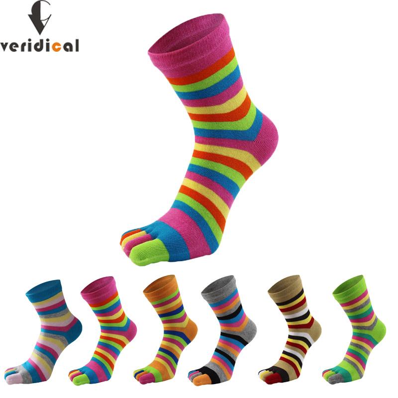 Радужные носки с пятью пальцами, женские, короткие, хлопковые, полосатые, разноцветные, модные, для молодых, влагоотводящие, веселые носки с пальцами, Харадзюку, 4 сезона