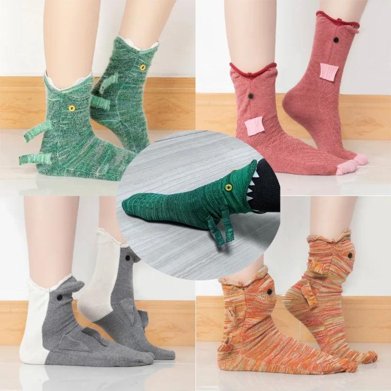 Новые вязаные носки с крокодилом Осень Зима Женские Милые Мультяшные Напольные Теплые Носки Рождественские Смешные Носки женские носки