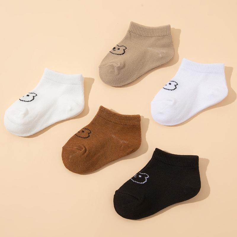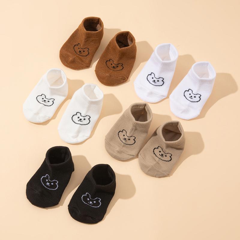 5 pairs of baby socks, cute bear-pattern elastic ankle socks, neutral baby socks, soft and suitable for newborns