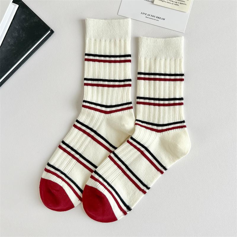 Модные носки для женщин Новые осенние повседневные дышащие полосатые носки Вышивка смешанных цветов Девичьи носки до щиколотки Высокое качество Тренды