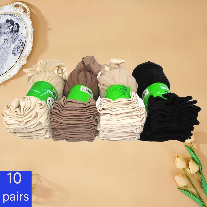 10 пар Женские летние сексуальные ультратонкие прозрачные носки из хрустального шелка, высокоэластичные нейлоновые короткие носки телесного цвета