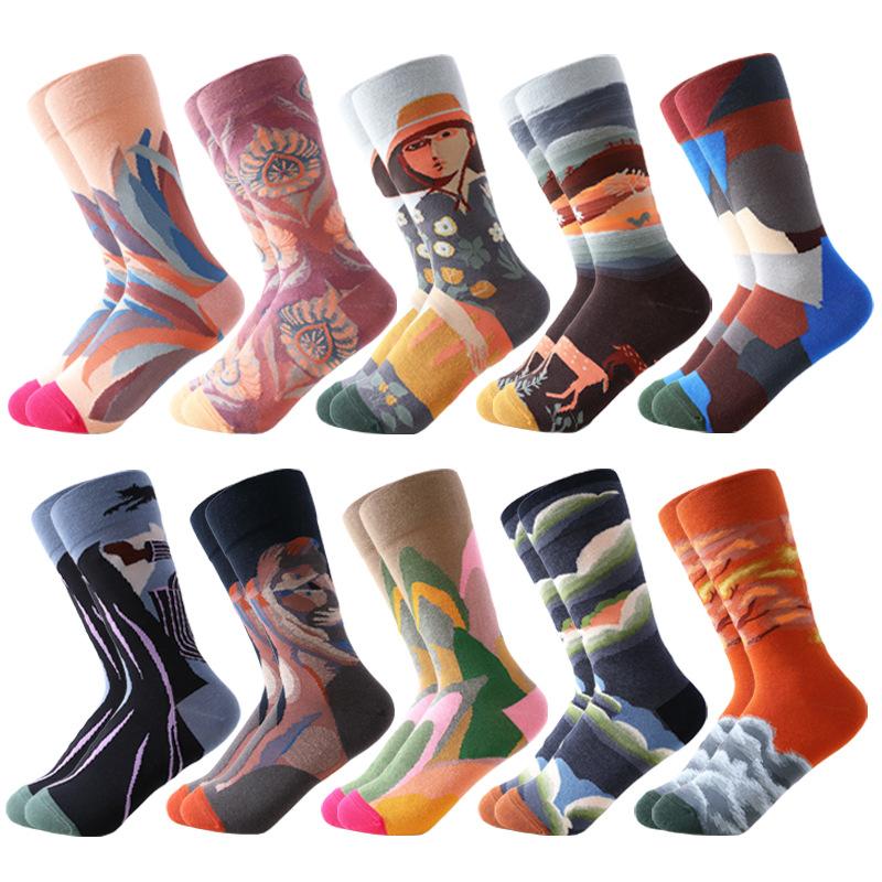 Хлопок гребенной пряжи новый ретро маяк японские носки приливные мужские и женские вышитые носки средней длины