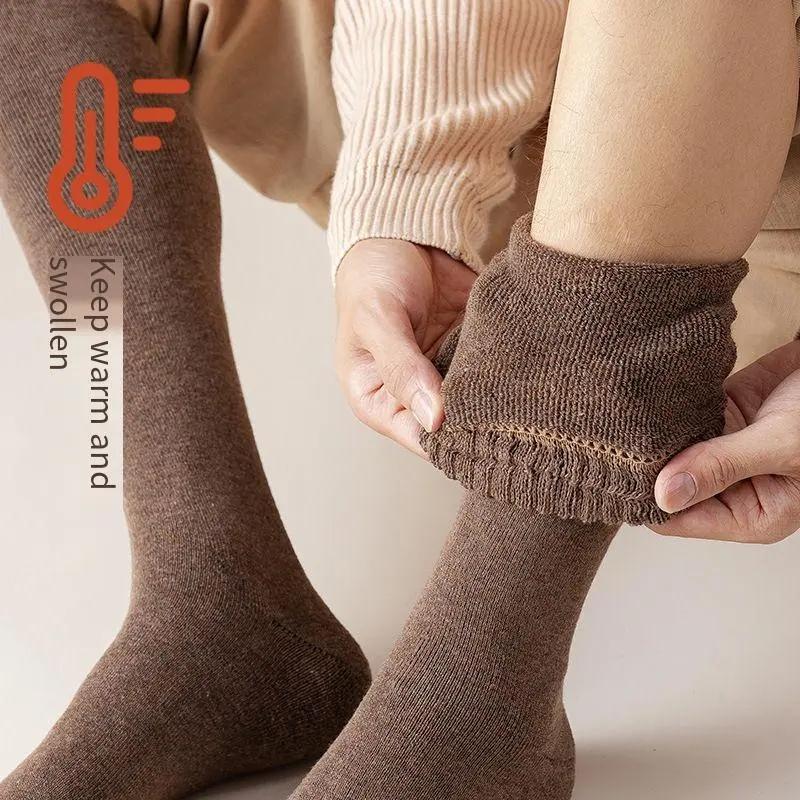 Зимние мужские носки до колена из шерсти, сохраняющие тепло дольше, компрессионные чулки, зимние махровые носки, хлопковые утолщенные носки до икры, подарок