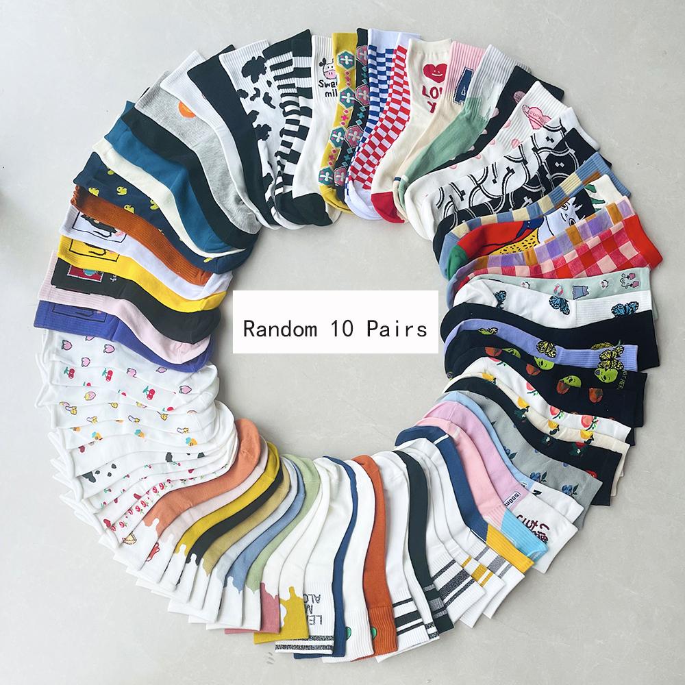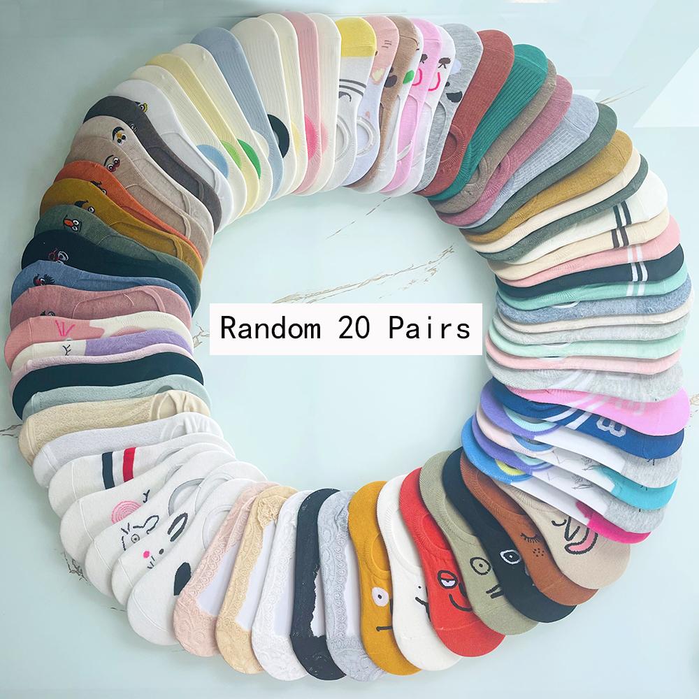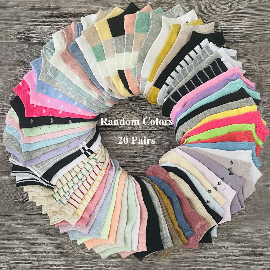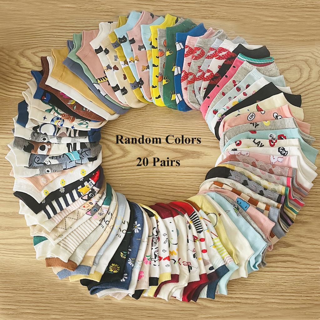 10/20 пар женских хлопковых мультяшных коротких носков случайных цветов, однотонные конфетные цвета, модные носки для девочек