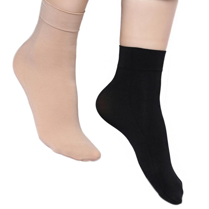 5 пар Модные осенне-зимние теплые носки Женские Девичьи Однотонные Широкие голенища Нейлоновые носки до щиколотки Женские Мужские Соккен Черные/Телесные
