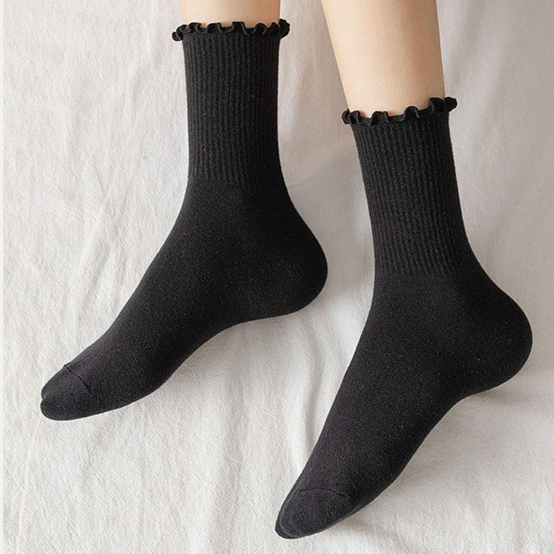 1/3 пары носков с оборками для женщин, средней длины, до середины голени, до щиколотки, дышащие, черные, белые, бежевые, женские модные хлопковые носки