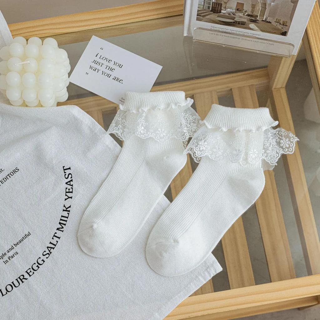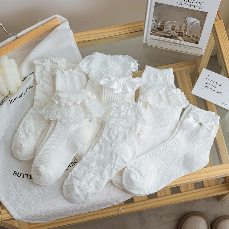 Корейские летние носки с кружевом в стиле Сладкая Лолита, носки с оборками принцессы для девочек и женщин, школьные носки для учениц, белые носки