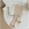 Женские длинные носки, кашемировые женские ботинки, однотонные шерстяные чулки до бедра, узкие повседневные хлопковые гольфы выше колена, пушистые женские длинные гольфы
