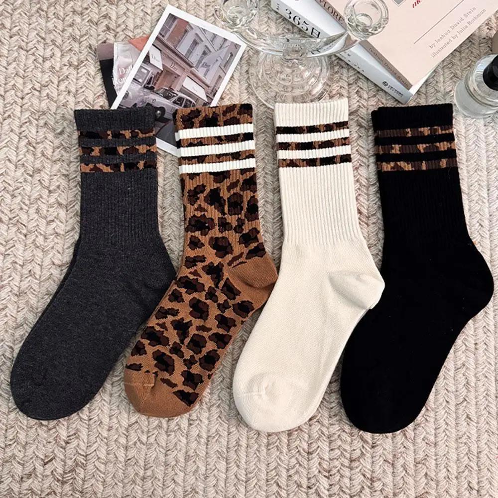 4 пары женских леопардовых носков, хлопковые спортивные носки, студенческие носки Y2k, белые носки в стиле Лолиты и Харадзюку для девочек, забавные носки