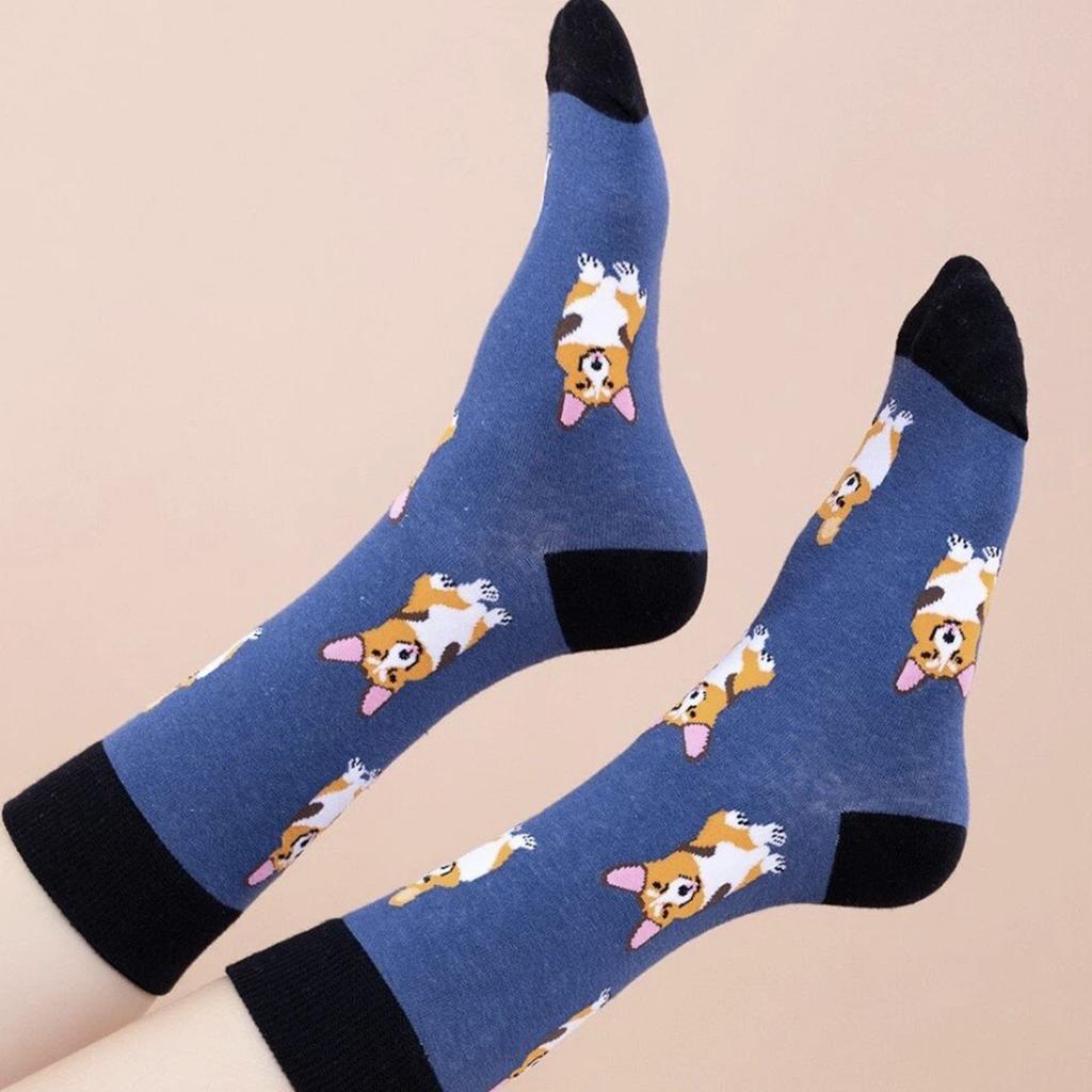 1 пара унисекс милые носки с рисунком корги новинка забавные удобные носки средней длины подходят для всех сезонов для повседневной улицы