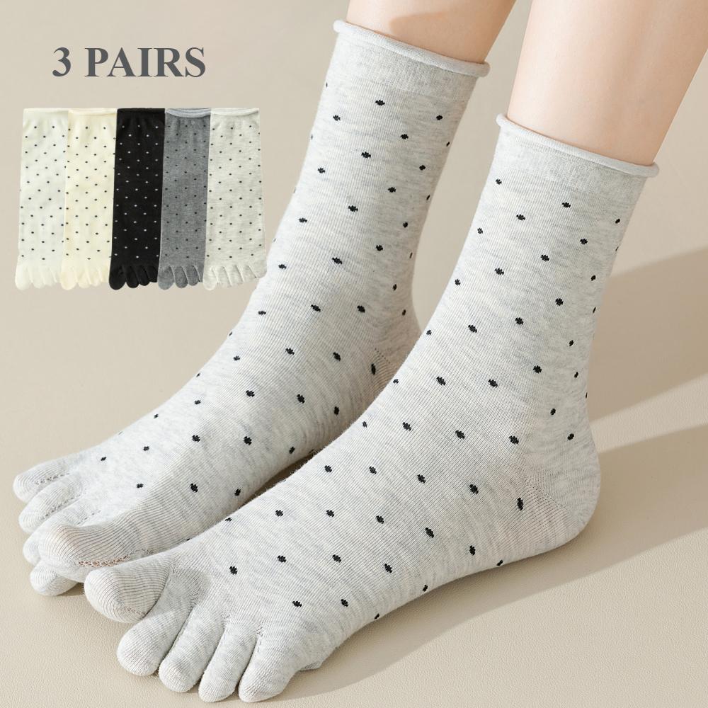3 пары носков с пальцами для женщин, средней длины, носки с пятью пальцами, милые в горошек, высококачественные хлопковые носки до щиколотки с раздельными пальцами