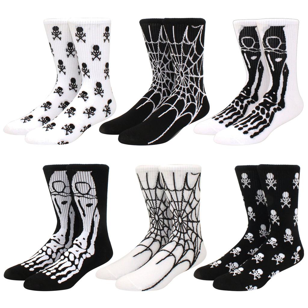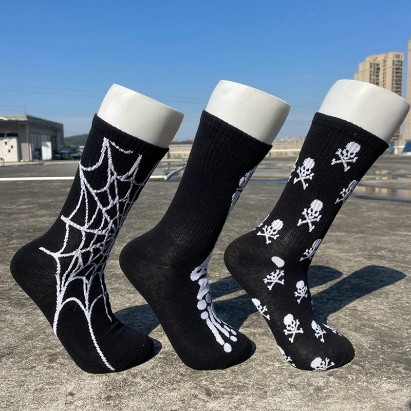 1 пара мужских носков для скейтбординга с изображением черепа паука в стиле хип-хоп