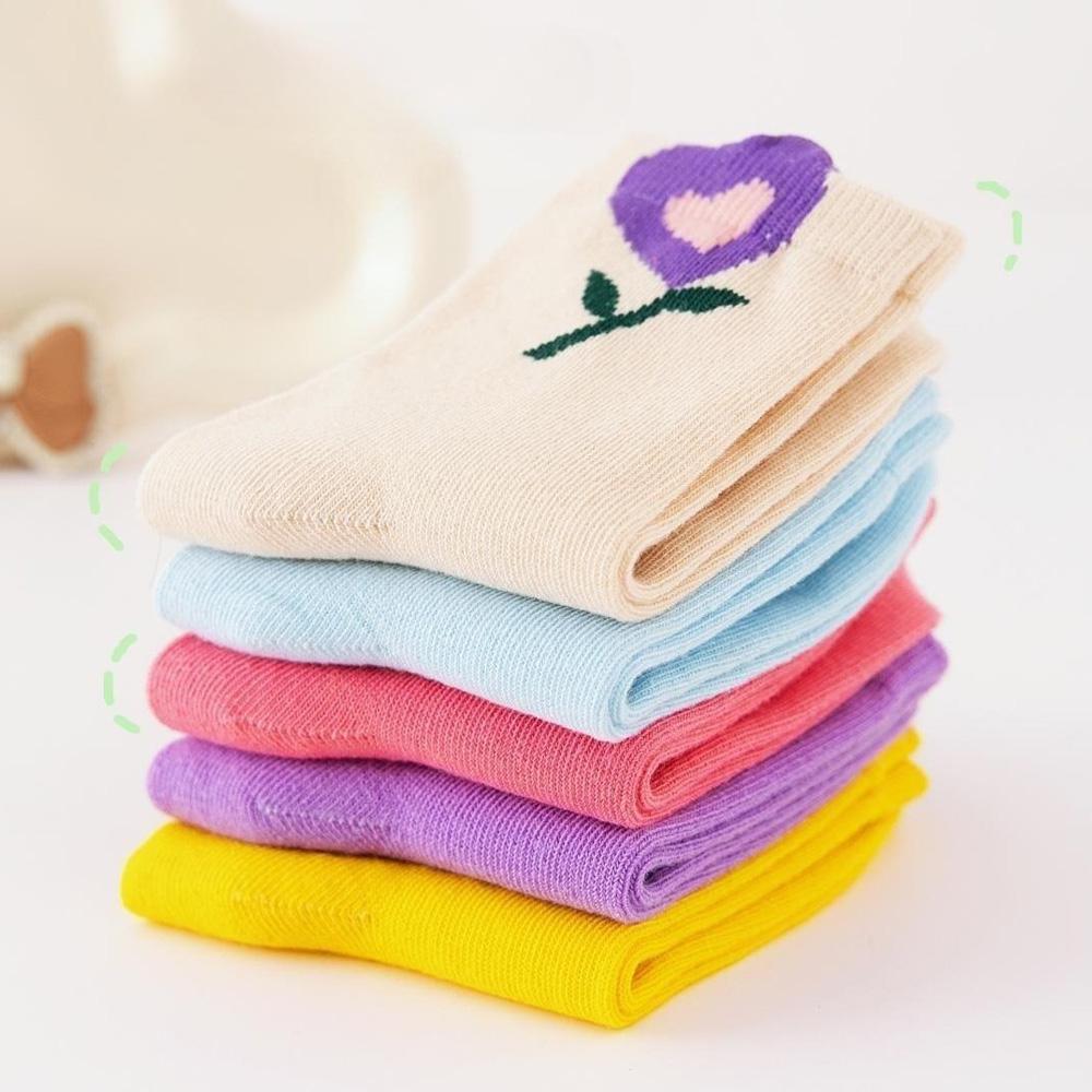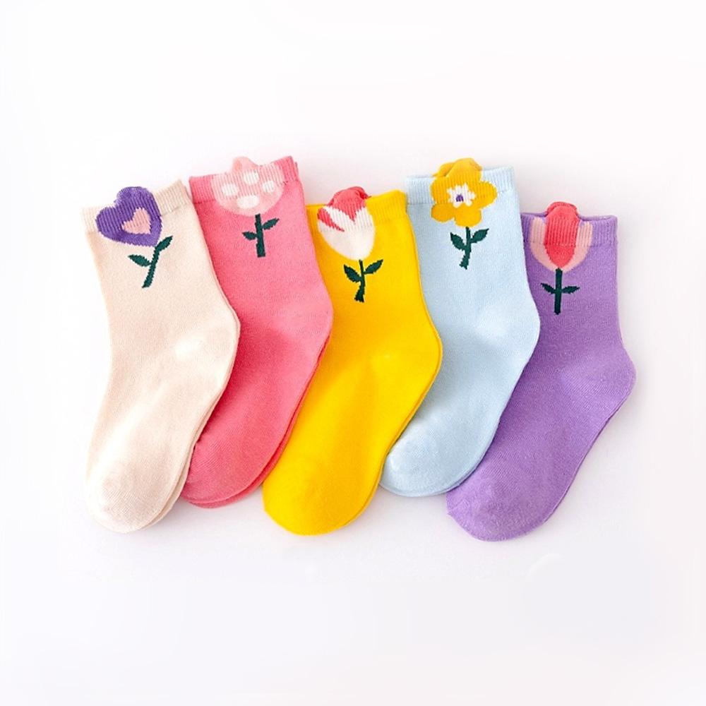 5 пар носков для девочек, милые носки с мультяшным цветочным узором, удобные дышащие детские носки