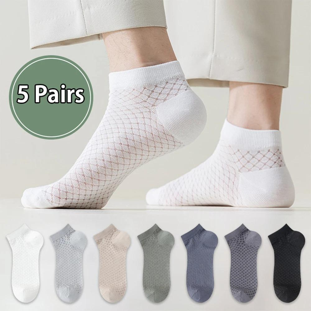 5 пар летних дышащих мужских сетчатых носков, впитывающих пот, тонких хлопковых мужских коротких носков с низкой трубкой, спортивных до щиколотки