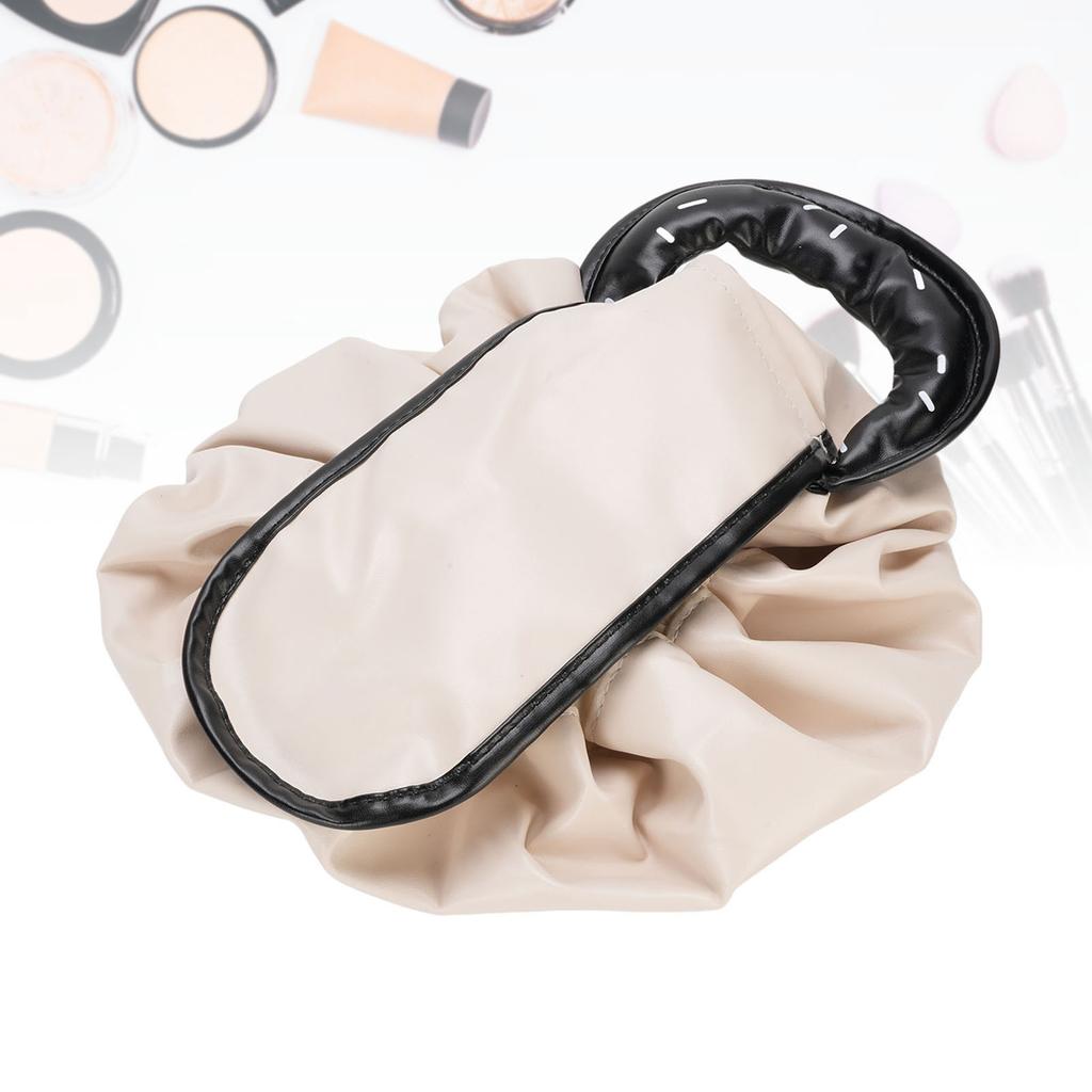 Drawstring Cosmetic Bag Water Proof PU Open Flat Makeup Organizer Toiletry Bag for Travel