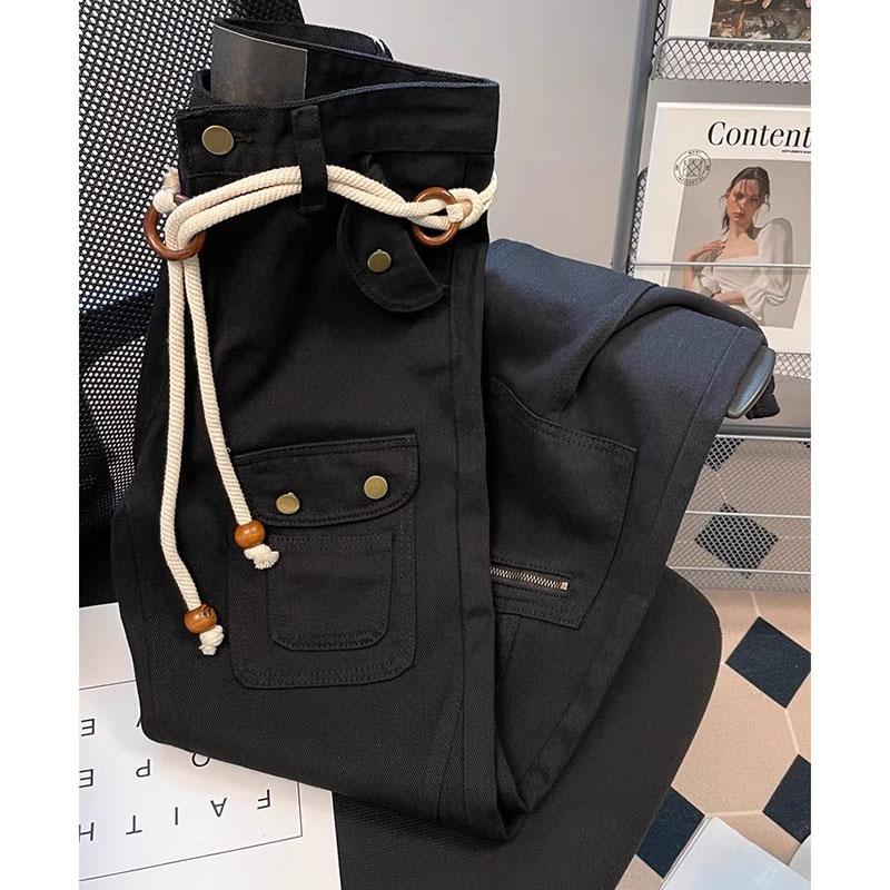 Винтажные свободные черные брюки карго женские с высокой посадкой уличная одежда с карманами женские прямые брюки — купить товар онлайн с бесплатной доставкой по всему миру!