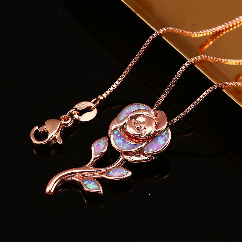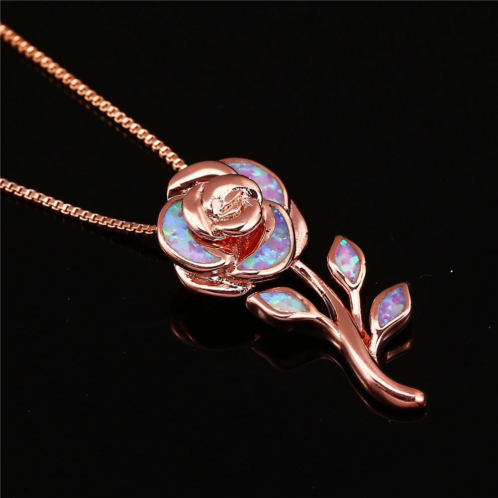 Европейская и американская мода Розовое золото Фиолетовый Целая роза Подвеска Ожерелье Ретро
