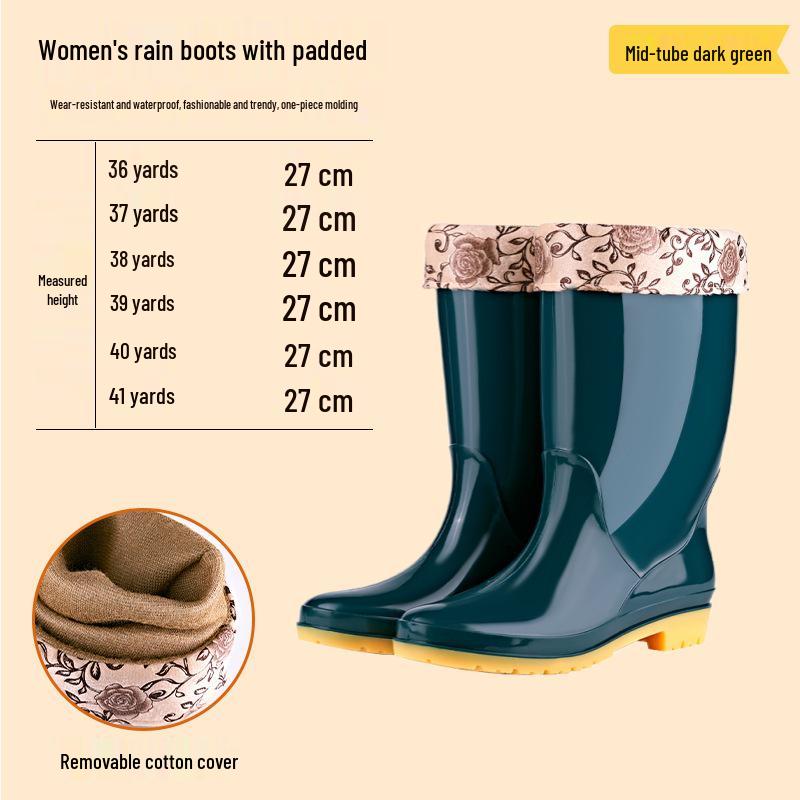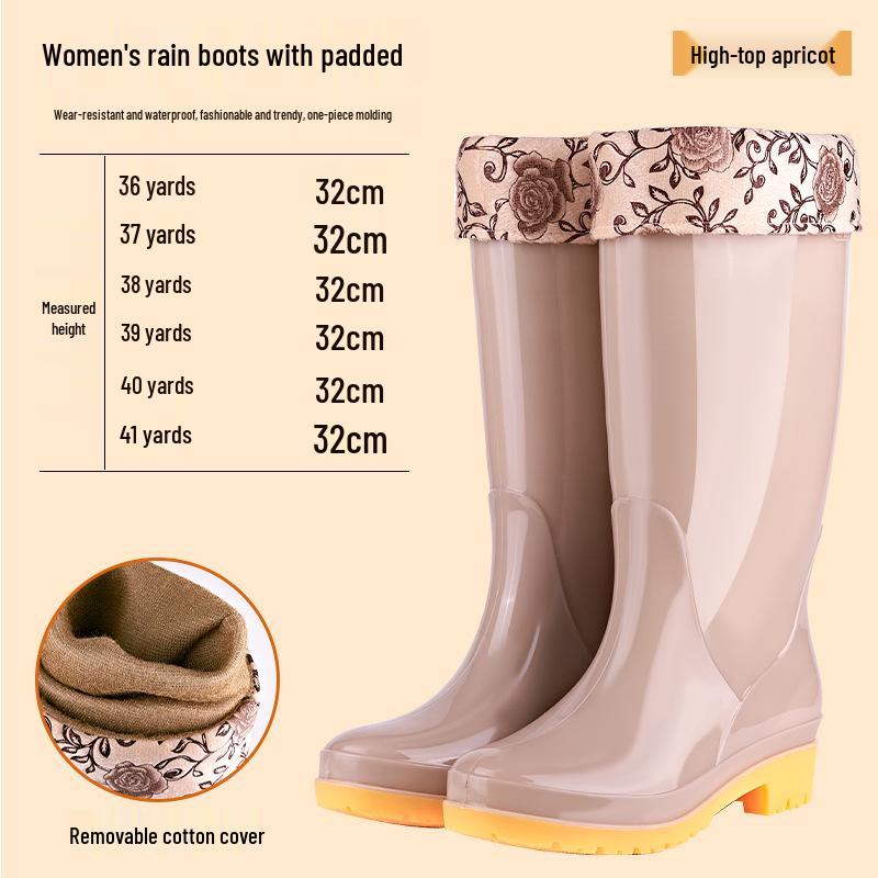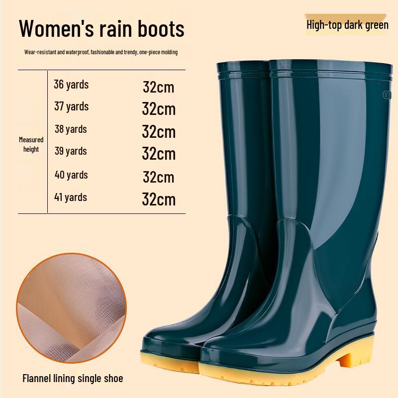 Женские нескользящие высокие резиновые дождевые сапоги - Теплые, резиновые и водонепроницаемые для кухни и работы