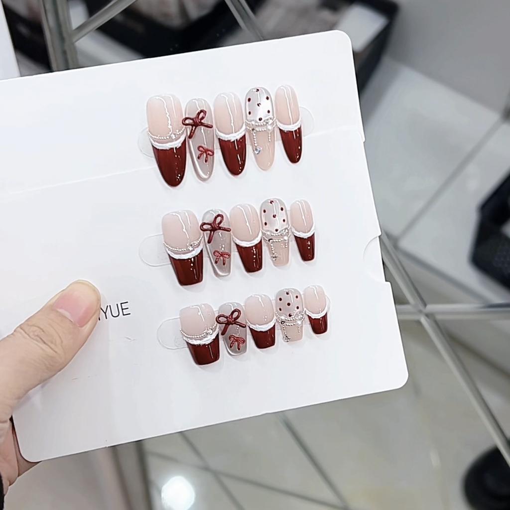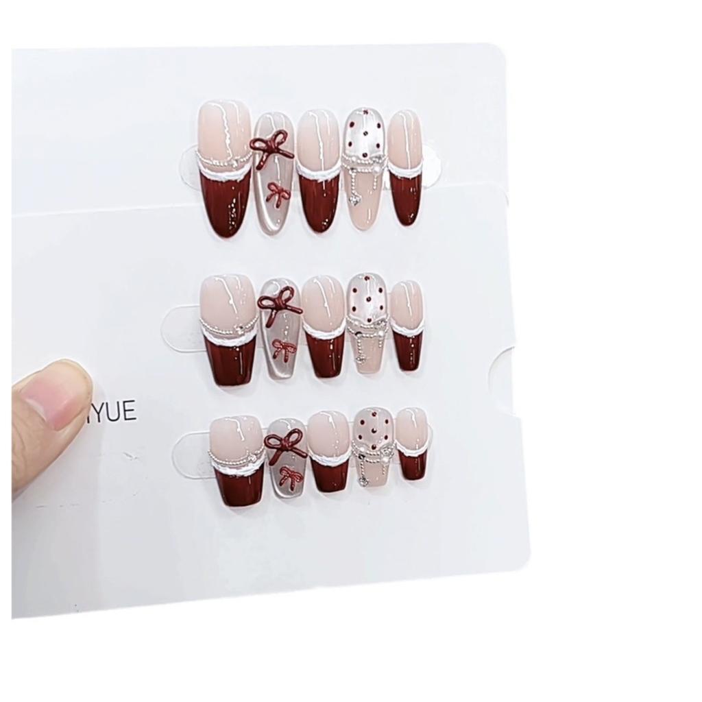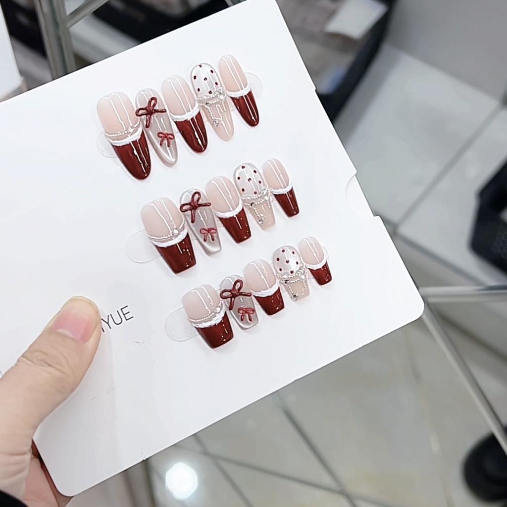 Чисто ручная работа Фототерапия Ношение Ногти Сладкий винно-красный Готовый продукт Многоразовый Накладной ноготь