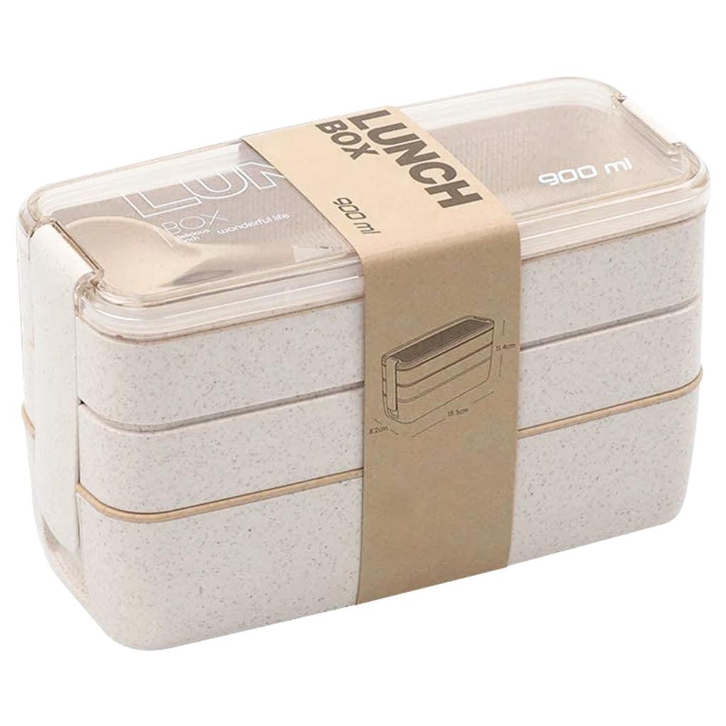 900 мл Bento Box для детей, 3 штабелируемых ланч-бокса, герметичный портативный контейнер для еды для обеда, ящик для хранения еды из пшеничной соломы, посудомоечная машина