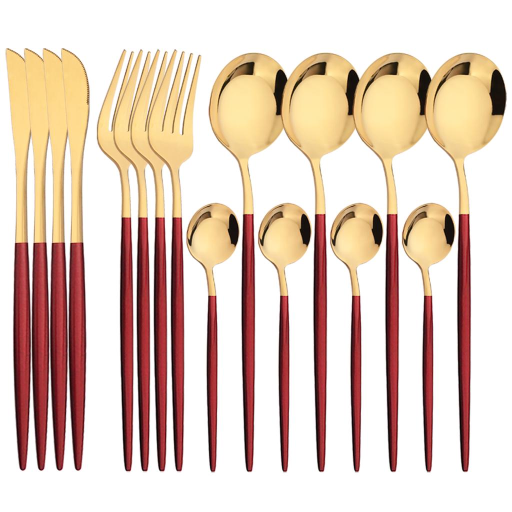 16 предметов столовой посуды, набор столовых приборов из черного золота, набор столовых приборов из нержавеющей стали, вилка, нож, чайная ложка, столовое серебро, набор кухонных столовых приборов