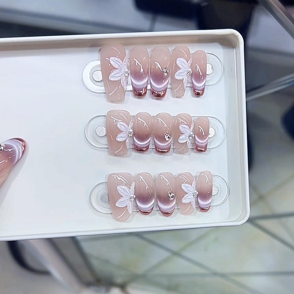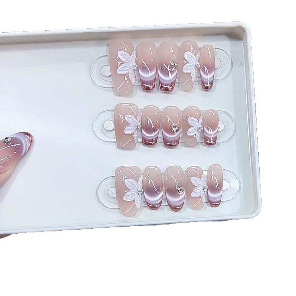 Ручная работа, броня, фиолетовый, расписанный вручную, трехмерный французский лепестковый кошачий глаз, высококачественный маникюрный патч