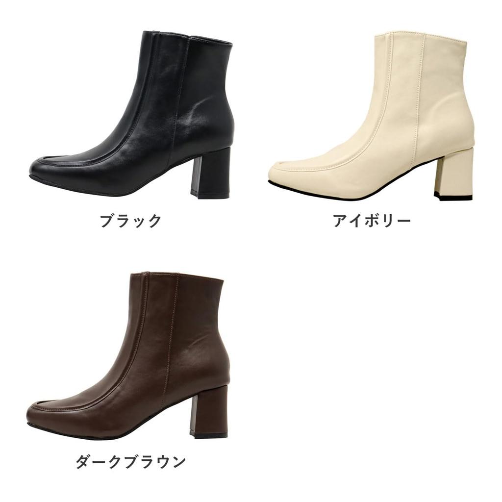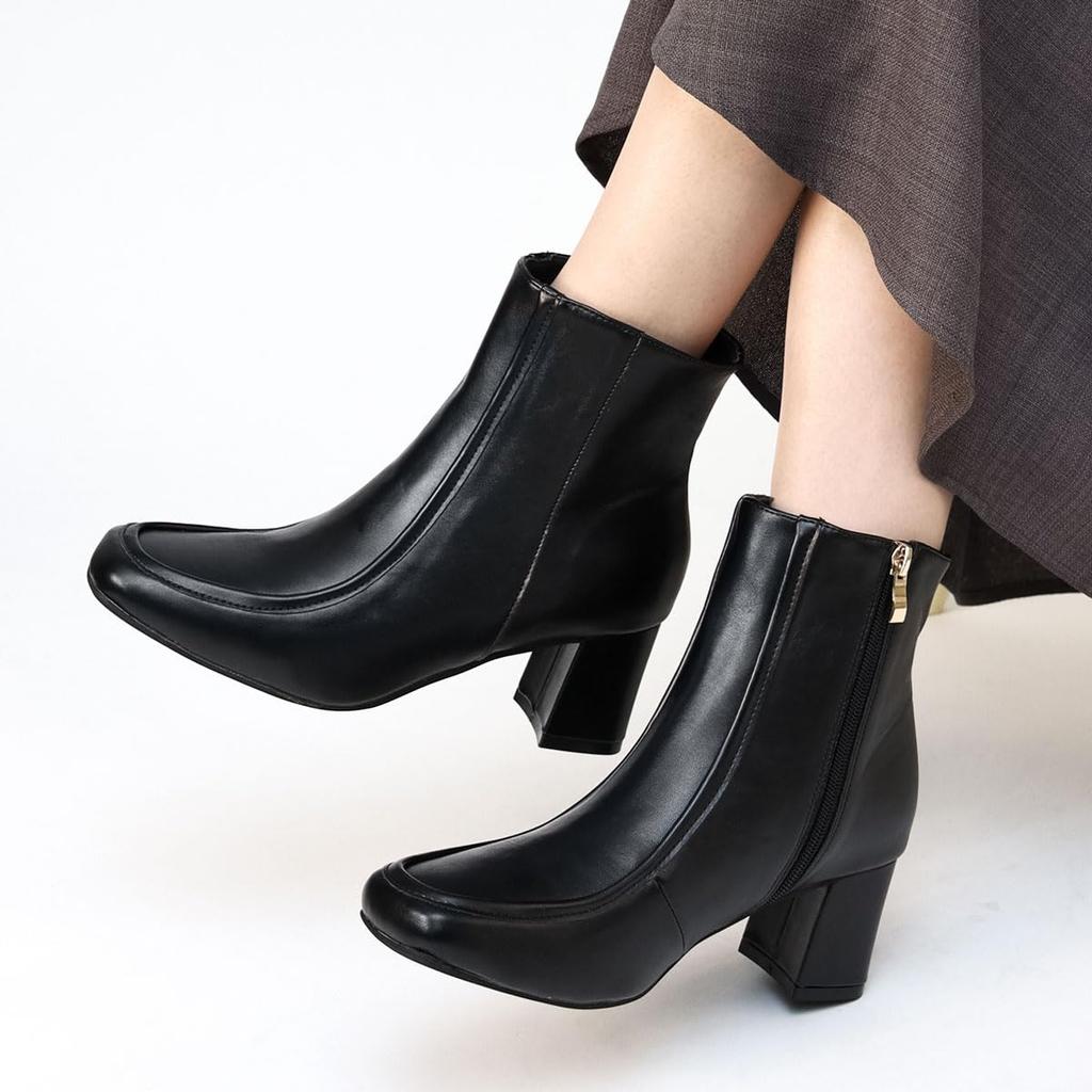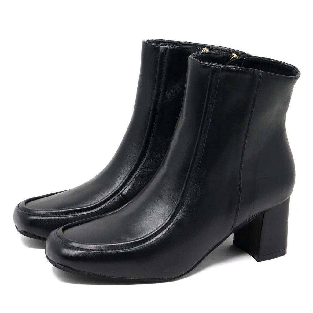 Квадратный 6см Короткий Стиль Красивый Бок Легкий в ПУ Синтетический Темный Японский Обувь [Liberty Doll] Женские Сапоги, Носок, Каблук, U-образный Носок, Длина, Усилитель, Ноги,