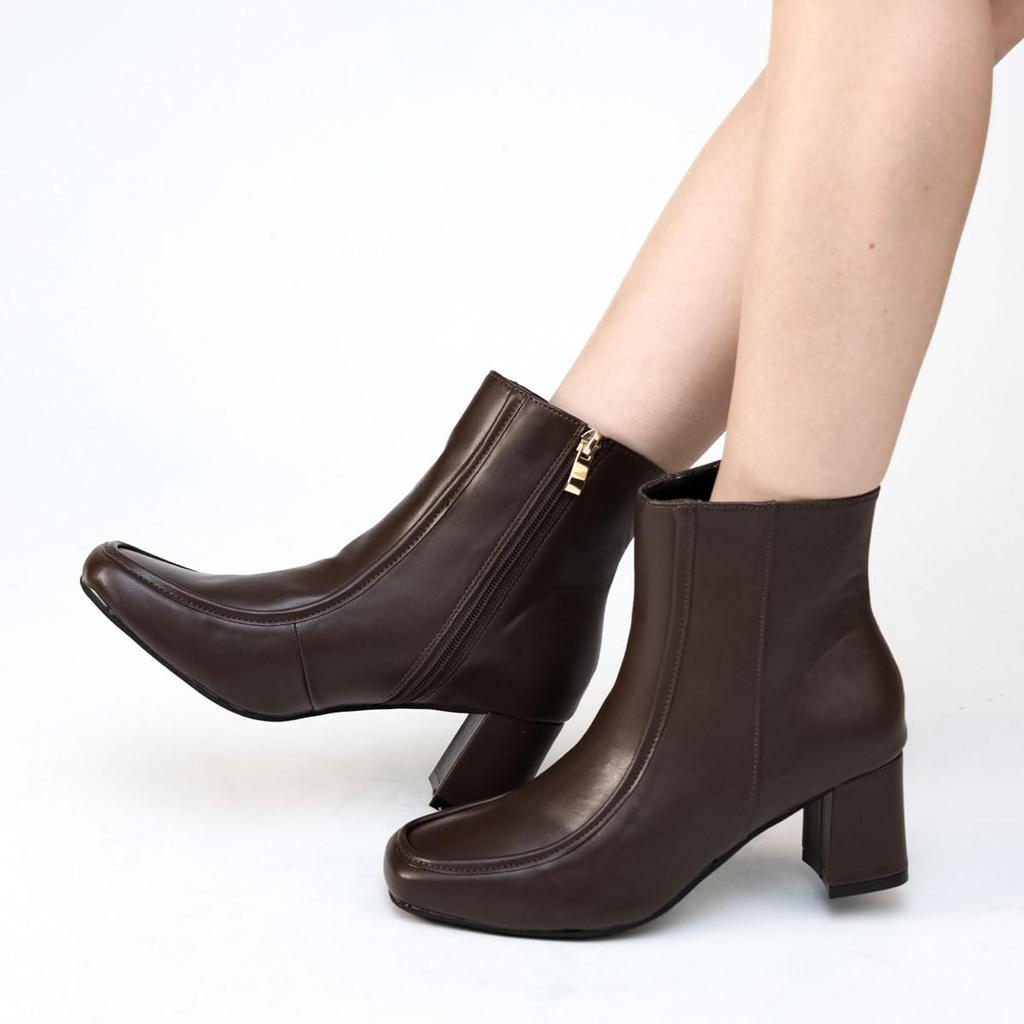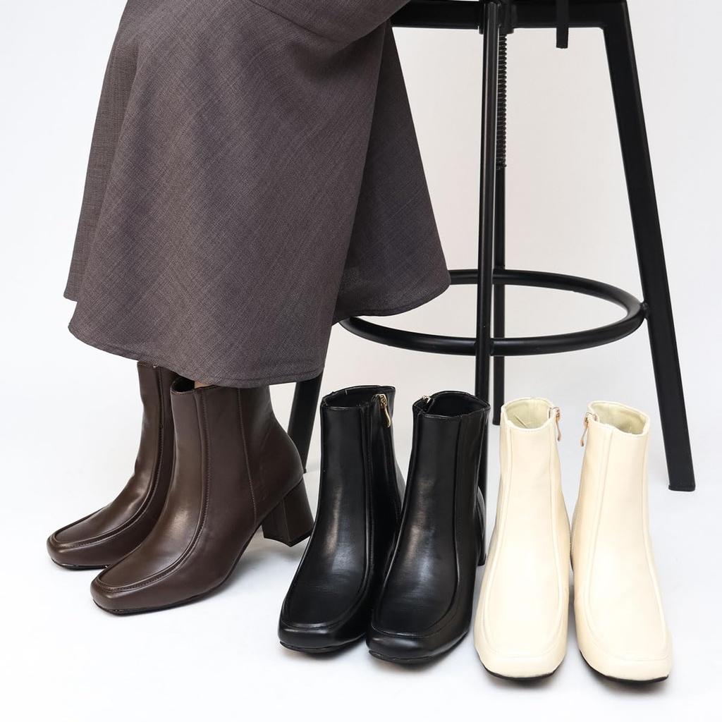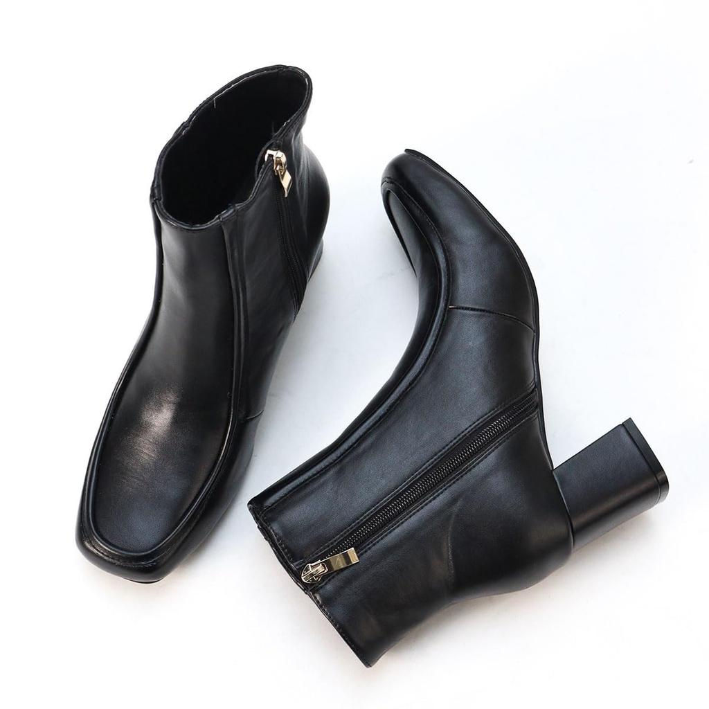 Квадратный 6см Короткий Стиль Красивый Бок Легкий в ПУ Синтетический Темный Японский Обувь [Liberty Doll] Женские Сапоги, Носок, Каблук, U-образный Носок, Длина, Усилитель, Ноги,