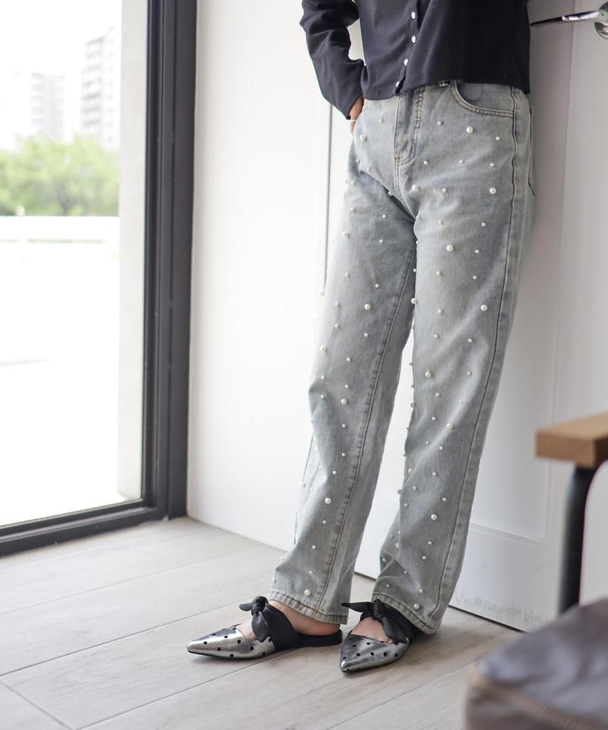 Мюли с острым носком и плоской лентой для женщин [Sest], средние, серебристые, dts2400-SILDOT-M