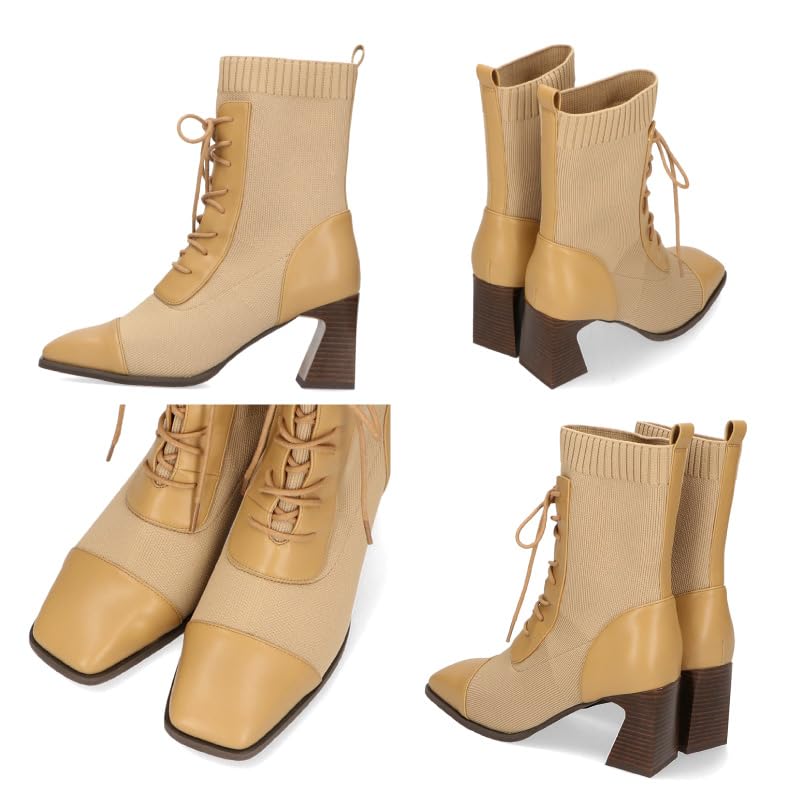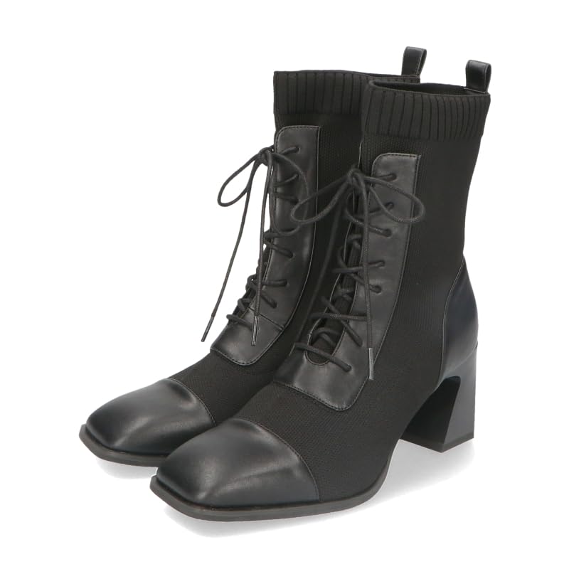 Oriental Traffic Knit Stretch Soft Short Boots 31433 BLACK Women's Lace-up Mid-length