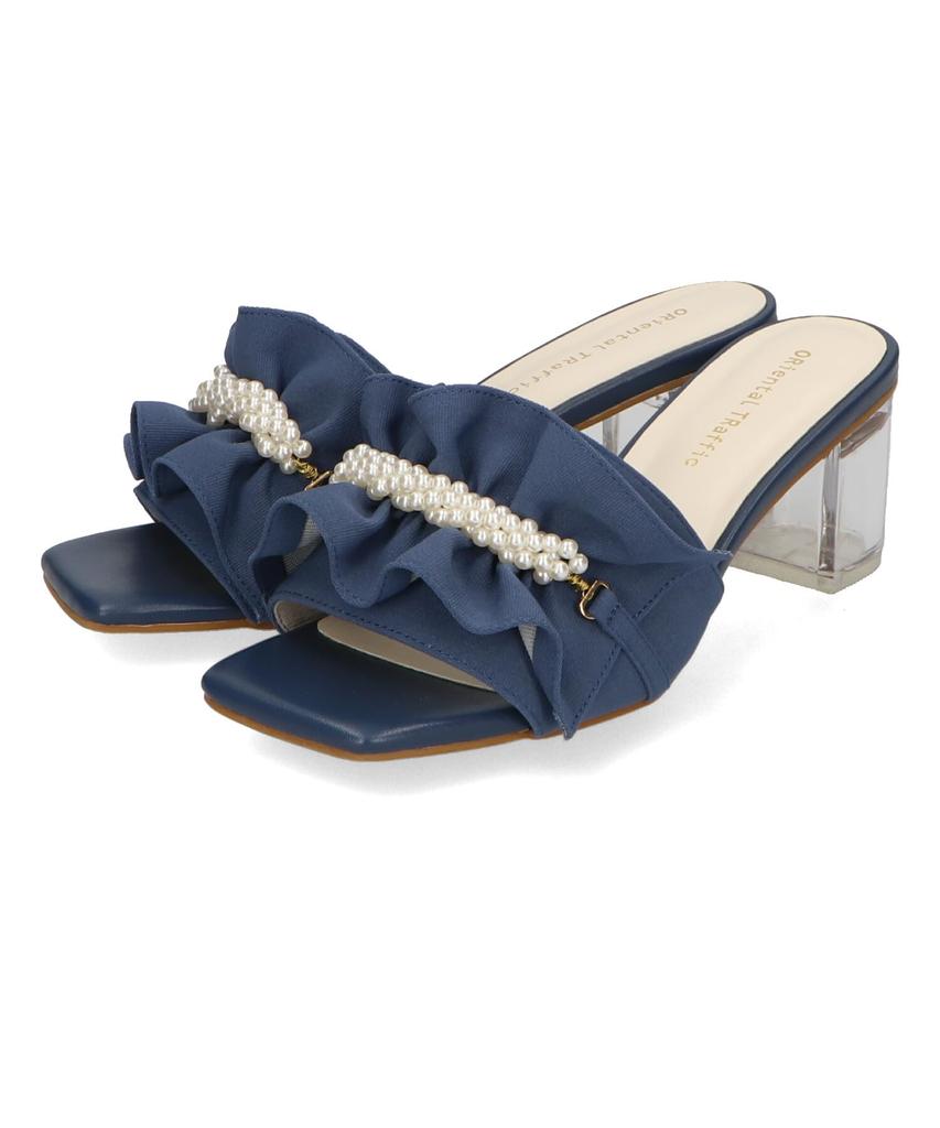 Мюли Oriental Traffic Жемчужный квадрат Большой и маленький Легко ходить 41230 см см Женские сандалии, Каблук, Носок, Размеры, в, СИНИЙ, 24.0 - 24.5