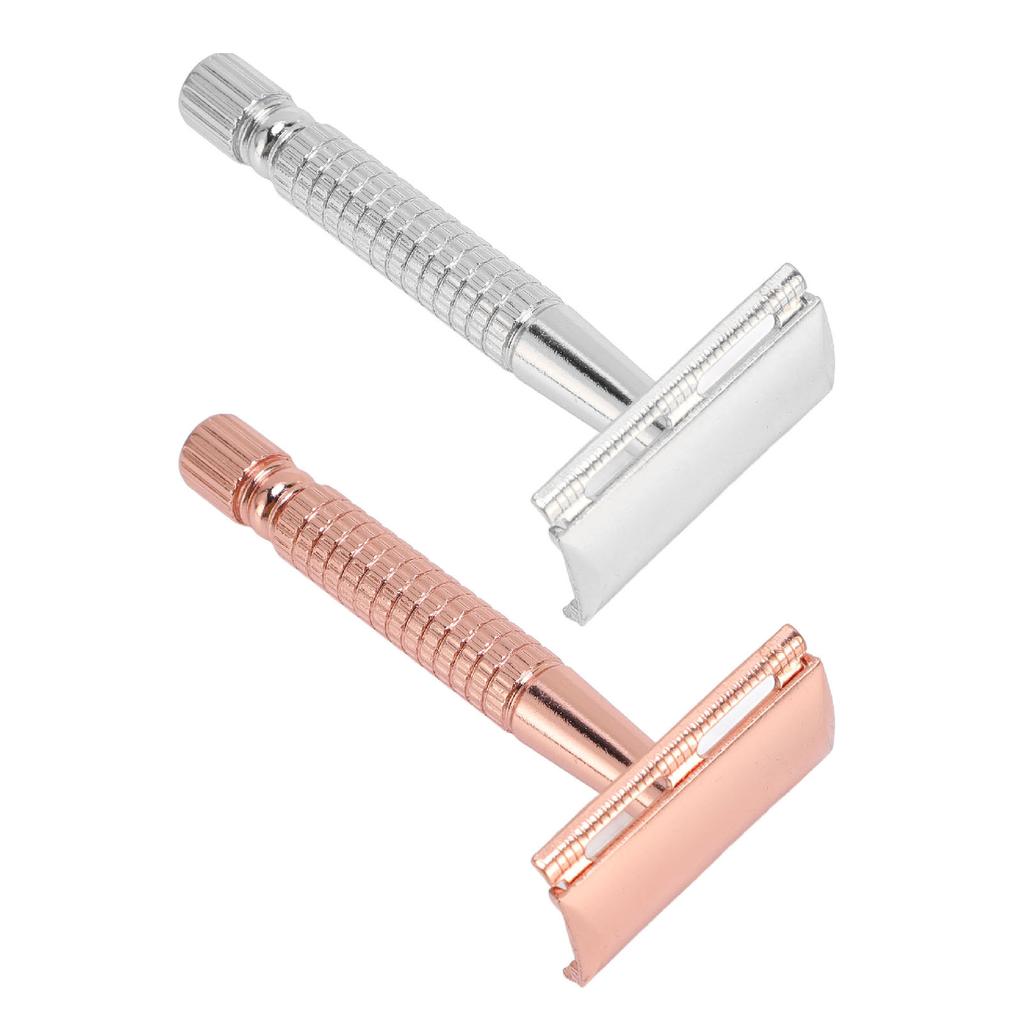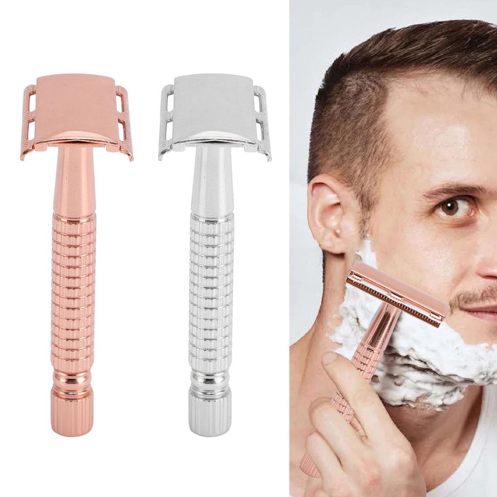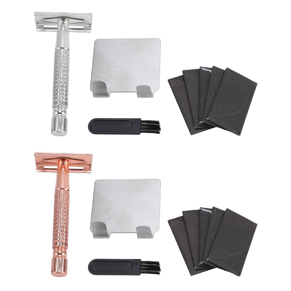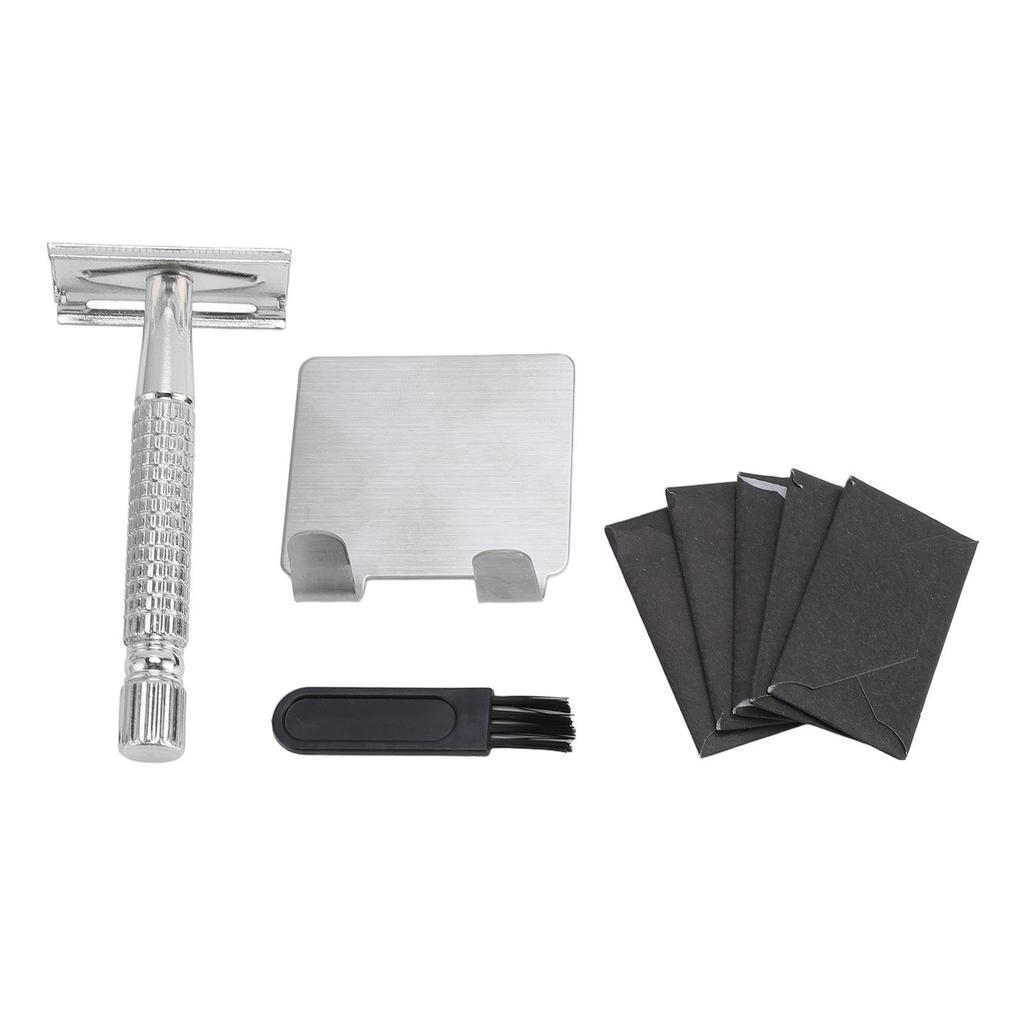Long Handle Double Sided Shaving Tool Metal Vintage Safety Shave Tool with Refill Cutter Stand Clean