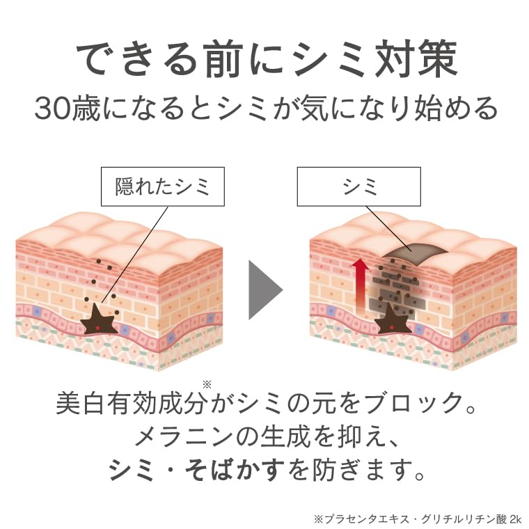 Предотвращает появление темных пятен и веснушек (※1) Увлажняющий эффект делает мелкие морщинки менее заметными! (※) (※1: Подавляет выработку меланина, предотвращает появление темных пятен и веснушек ※: Тест по оценке эффективности завершен)