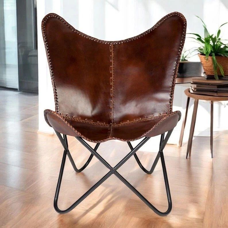 Коричневое складное кресло-бабочка - компактное и стильное сиденье. Лучшая кожаная замена кресла-бабочки. Премиальный кожаный чехол, кожа BKF, роскошь для гостиной, кресло для отдыха, кресло для подъема