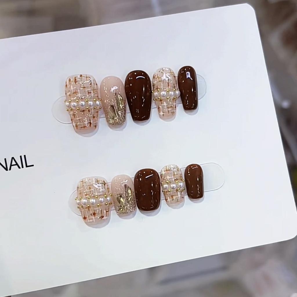 Чисто ручная работа Осенний новый стиль Фототерапия Носимая броня Кошачий глаз Темперамент Коричневый Стиль маленького аромата Патч для нейл-арта