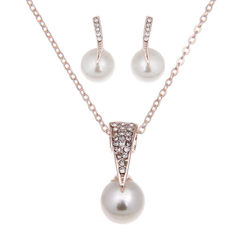 Свадебный комплект из ожерелья и серег со стразами и жемчугом - элегантные европейские и американские свадебные ювелирные аксессуары — купить товар онлайн с бесплатной доставкой по всему миру!